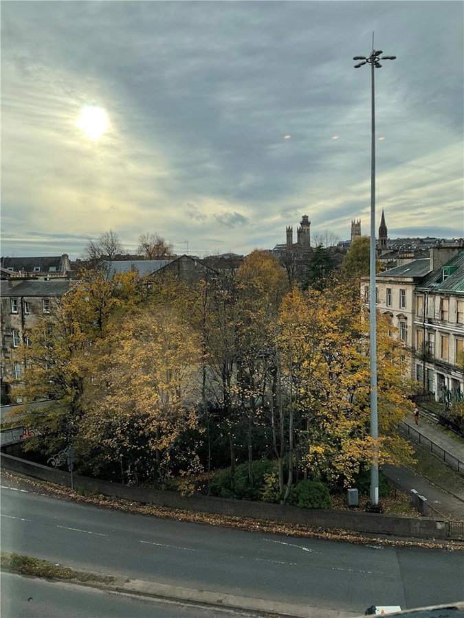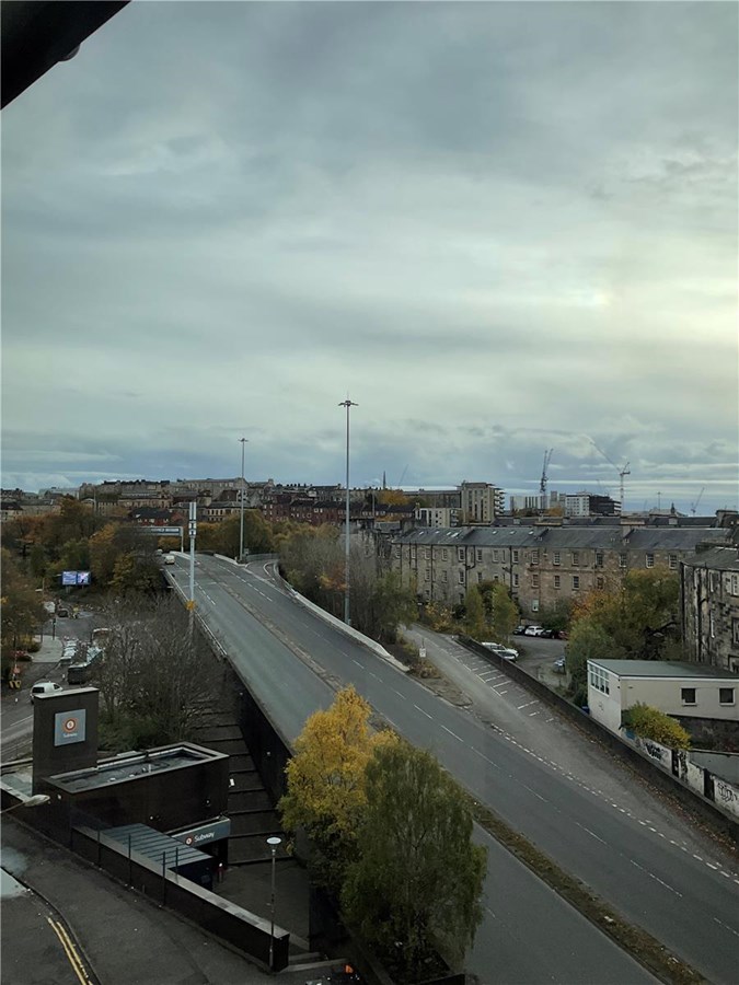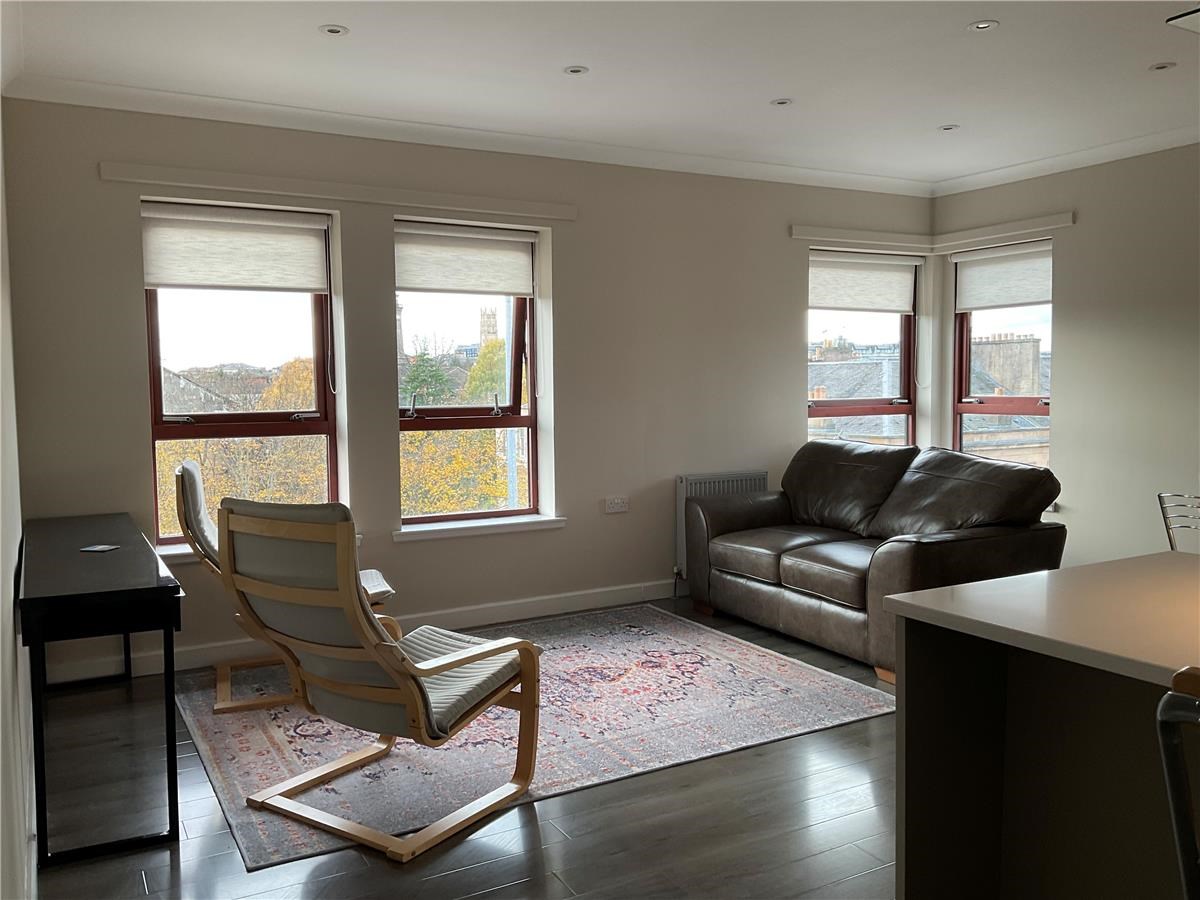 Top floor flat in modern building with lift. Spacious, open plan lounge/kitchen with microwave, fridge/freezer, washer/dryer, dishwasher. Two double bedrooms. Bathroom with shower. Gas CH. Secure entry. Private parking. EPC rating: C. Adjacent to St. George's X underground. Convenient for city centre, west end and M8.