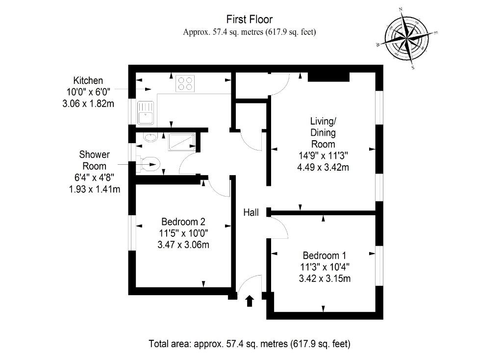 The property is on the first floor and is comprised of a spacious hallway with storage cupboard, two well proportioned double bedrooms, spacious living room and a modern fitted kitchen with white goods.