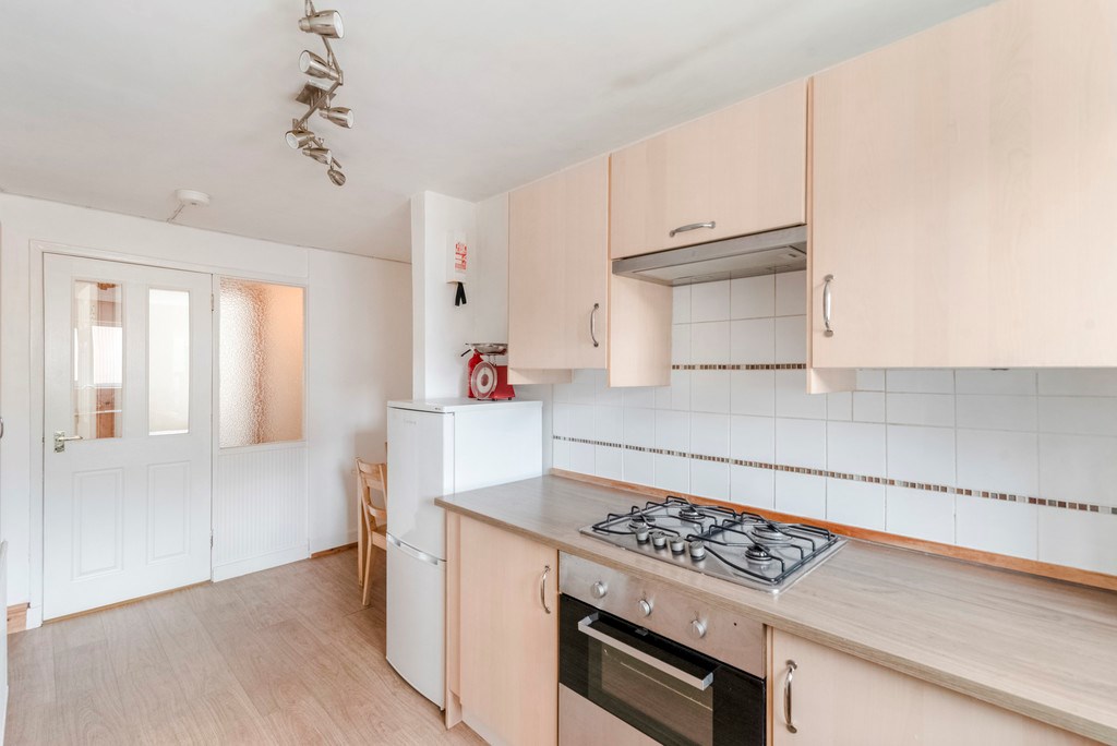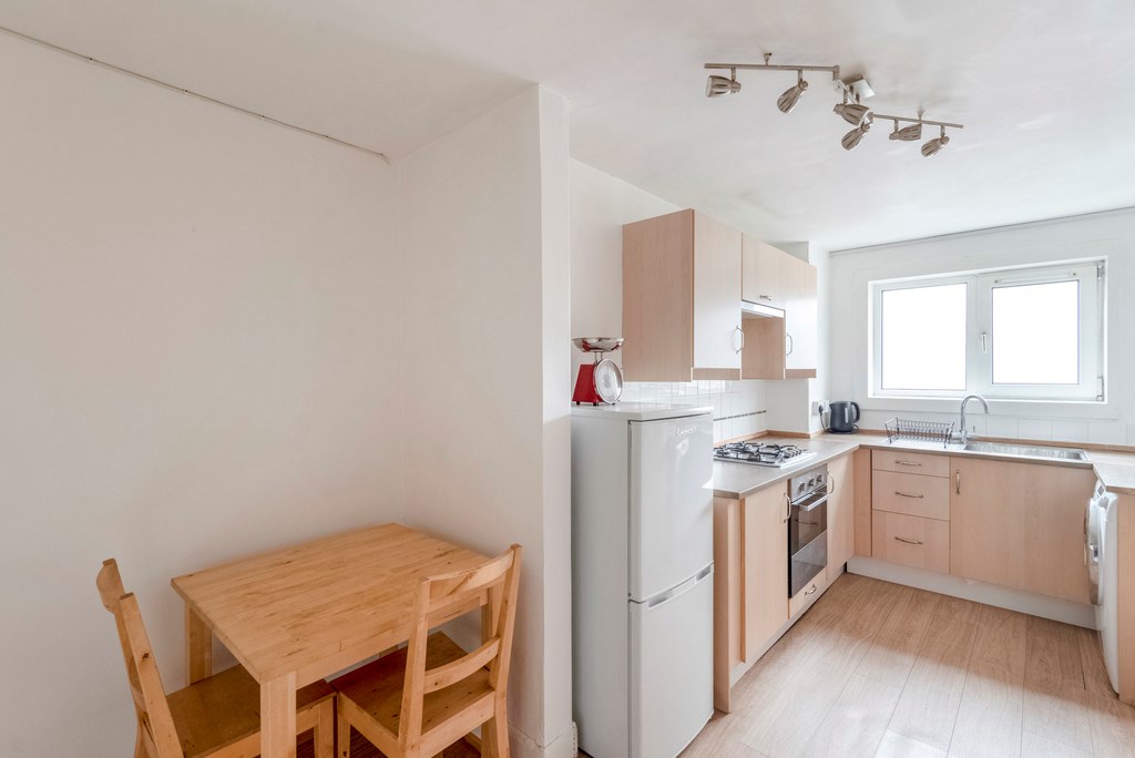 KITCHEN – Fully fitted kitchen with light wooden cabinets and contrasting dark wood countertops, giving the space a bright and airy feel. This kitchen benefits from sufficient counter space and plentiful storage. Complete with dining area and multiple storage cupboards.
