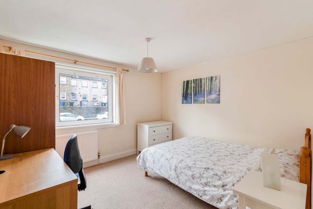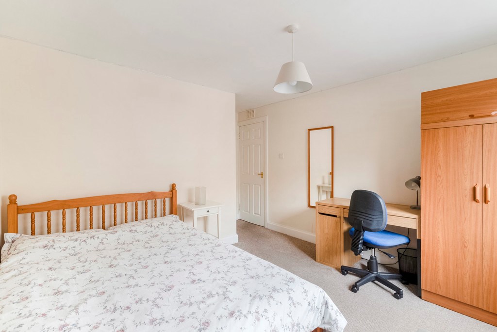 BEDROOM 1 – Spacious double bedroom with carpeted flooring and neutral walls. Benefiting from a large window, which allows an abundance of natural light into the room.