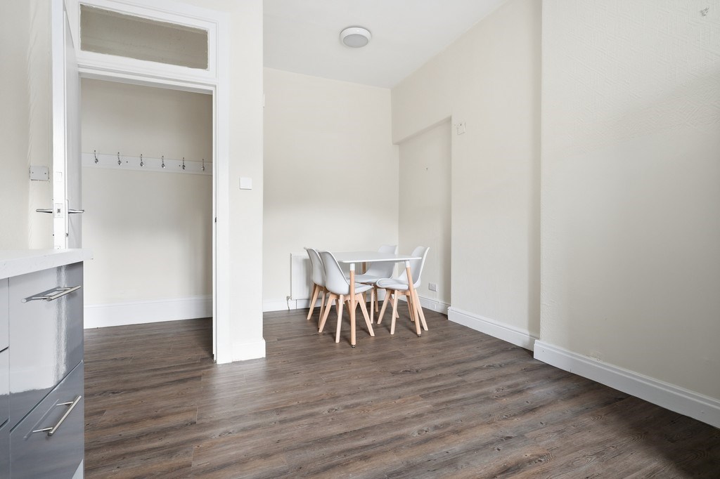 The property comprises two beautifully proportioned double bedrooms, each offering generous floor space and flexibility for both restful living and home working. The expansive kitchen, complete with a dedicated dining area, provides an inviting setting for both everyday living and entertaining.