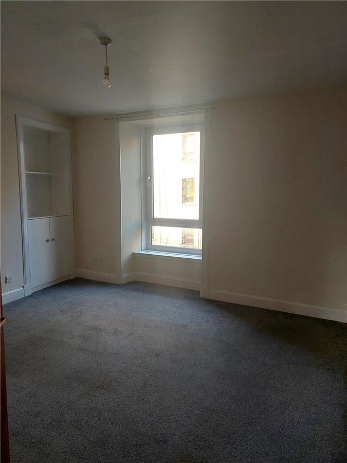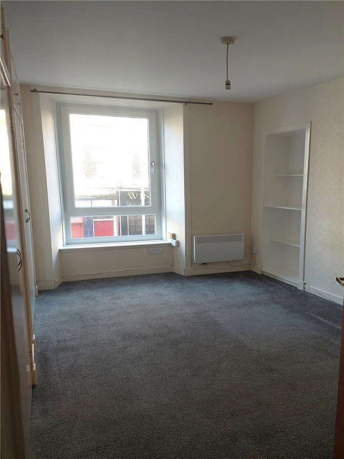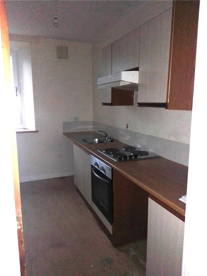 Well maintained first floor flat in a block of three. The flat comprises a living room, kitchen (with hob and oven), bathroom with shower over bath and 2 bedrooms (one with fitted wardrobes).