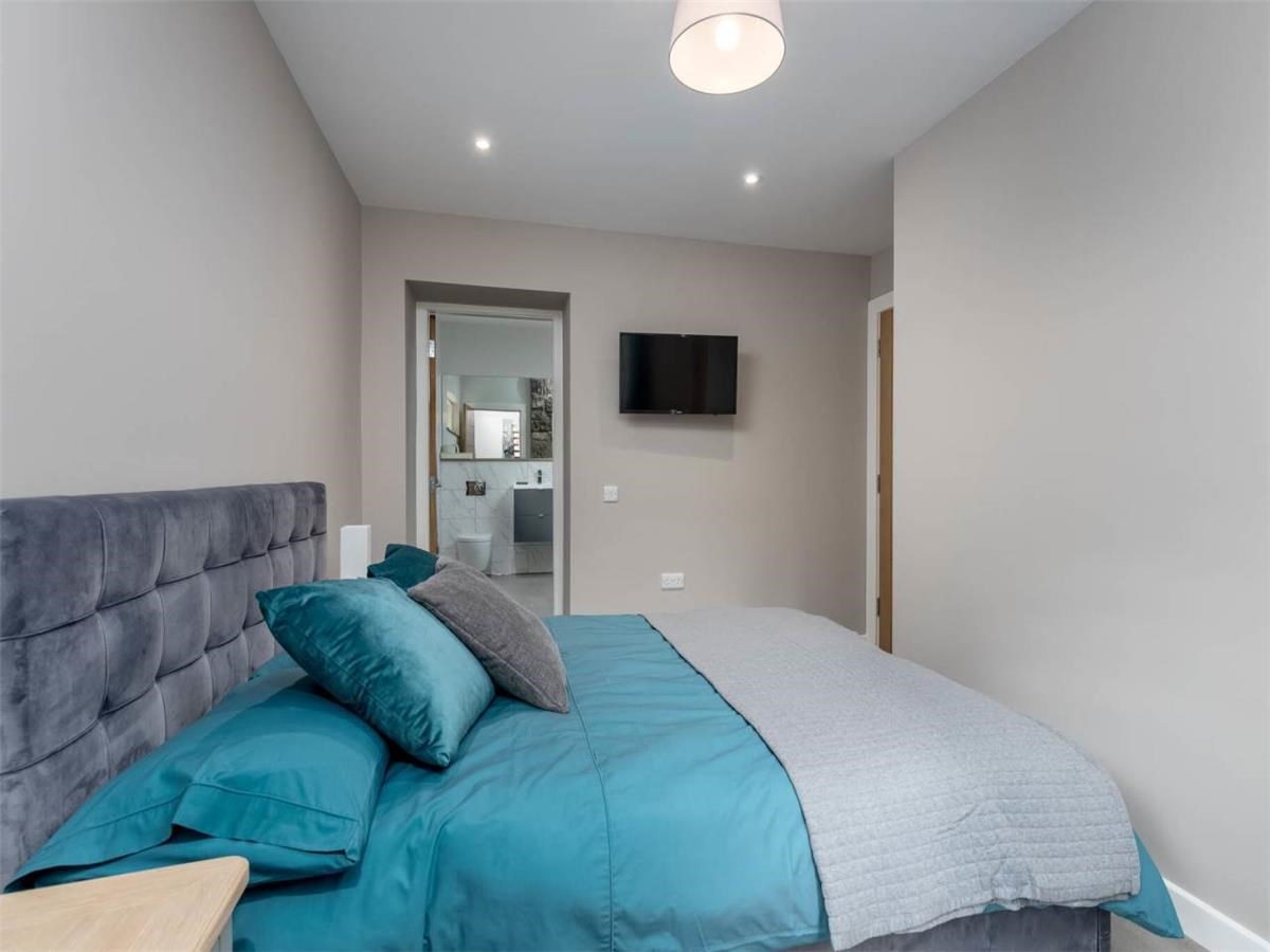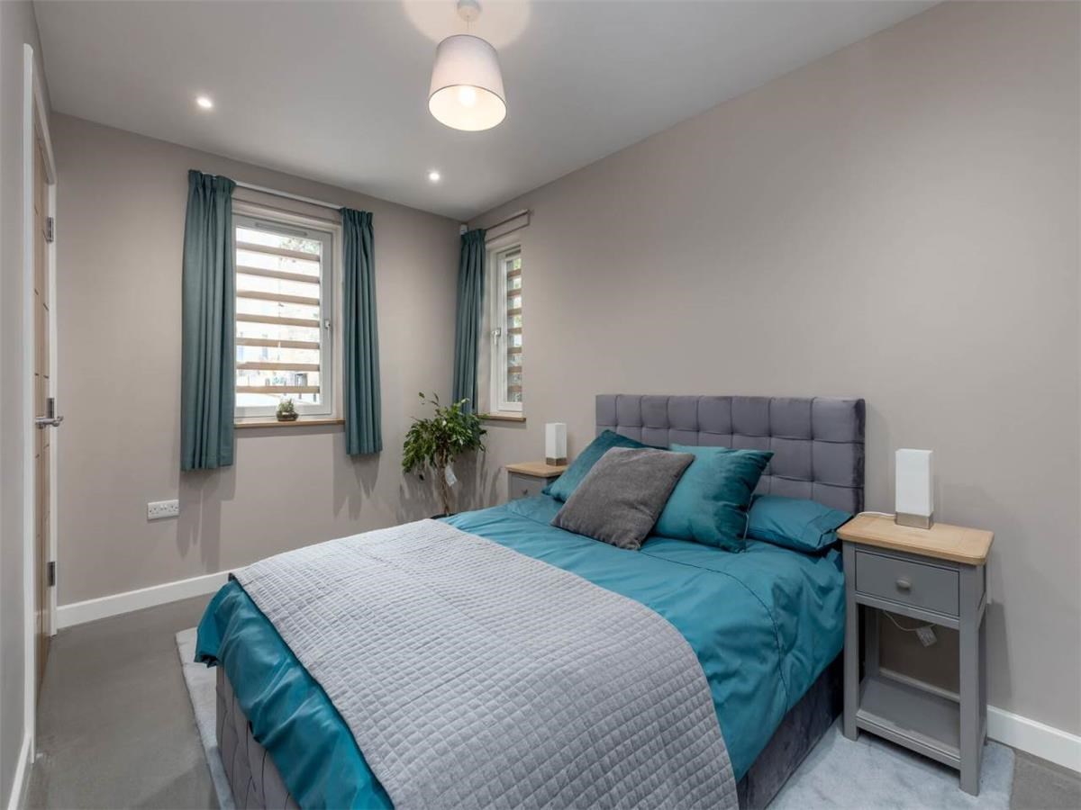 Ground floor - a bright welcoming entrance hallway, the principle bedroom with built in wardrobe and en-suite Jack & Jill shower room that is accessed from the hallway too. A good sized office leading onto the paved private garden.
