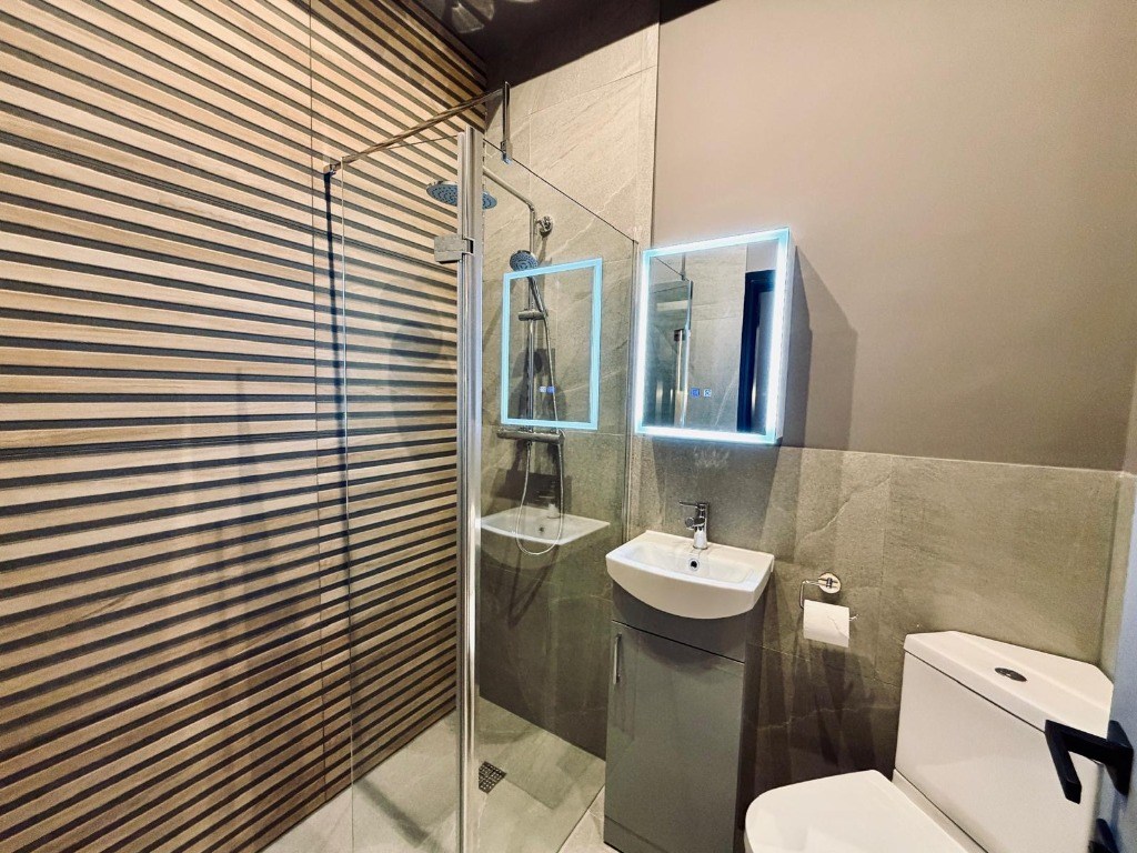 The property has been finished to an exceptional standard and comes fully furnished, making it ideal for a professional tenant seeking a high-quality, low-maintenance home. The bright studio space is thoughtfully designed, with a contemporary fitted kitchen featuring electric hob, modern shower room, and efficient electric heating throughout. (Please note: no gas supply to the property.)