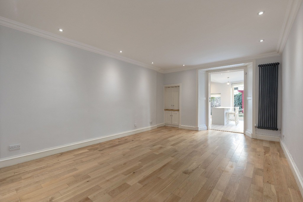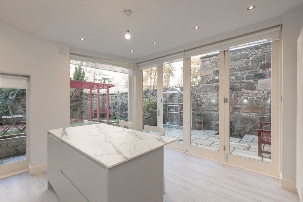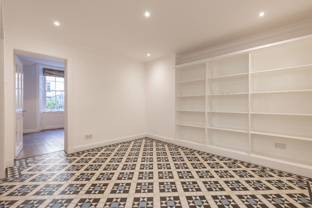 The property is tastefully redecorated throughout and the kitchen has been fitted with high-grade materials and sleek LVT flooring. The contemporary kitchen offers a minimalist layout with clean lines, an open space with a breakfast bar, 2 fridges (one with freezer compartment) and an integrated full-size dishwasher, gas hob and electric oven. It has been designed to create a lovely entertaining space that benefits from easy access to the lovely landscaped gardens. All additional washing appliances (including tumble dryer) and additional white goods including full-size freezer are located in the refurbished cellars to keep the kitchen as clutter free as possible.