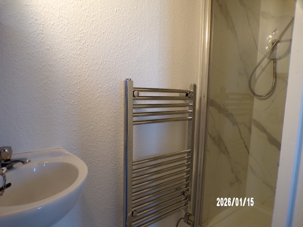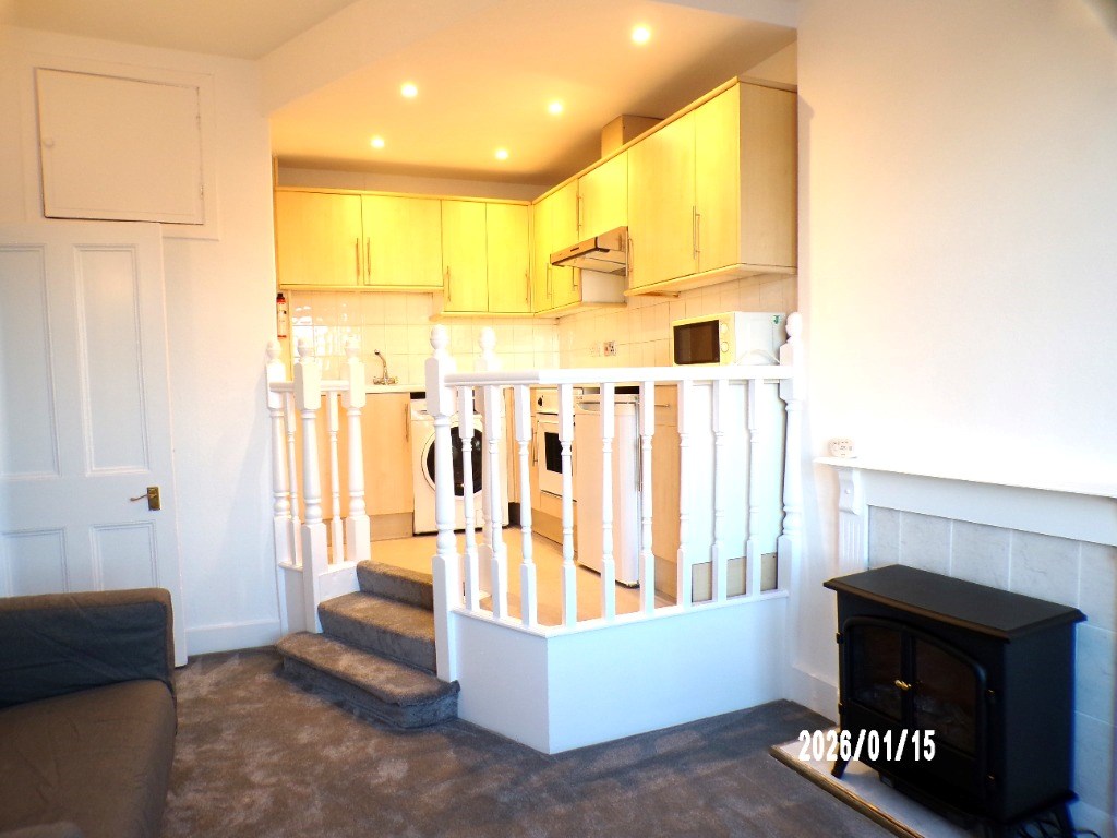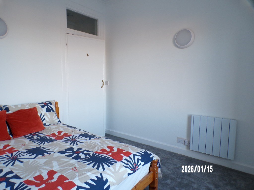 Newly redecorated and new flooring throughout it is located on the second floor. Furnished Flat comprises of: hallway, open plan living room and fitted kitchen with washing machine, electric oven / hob and fridge. A double bedroom with built-in wardrobes. Separate WC and separate shower room. Permit parking. Electric Ecco Heating.