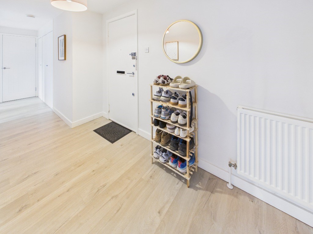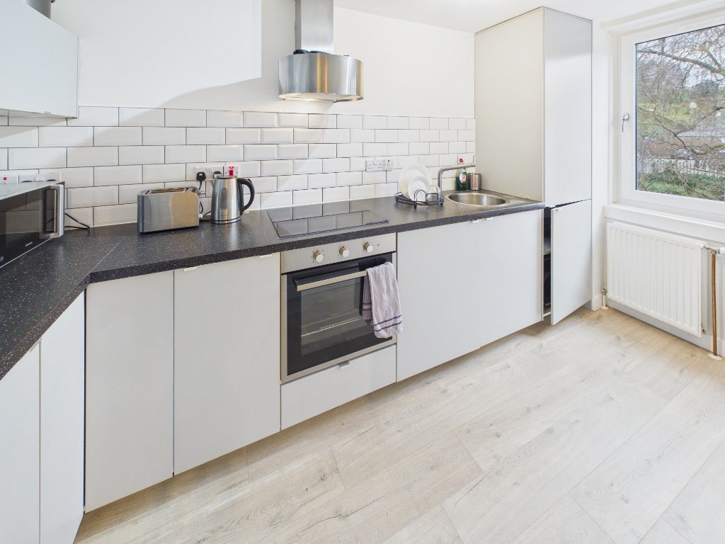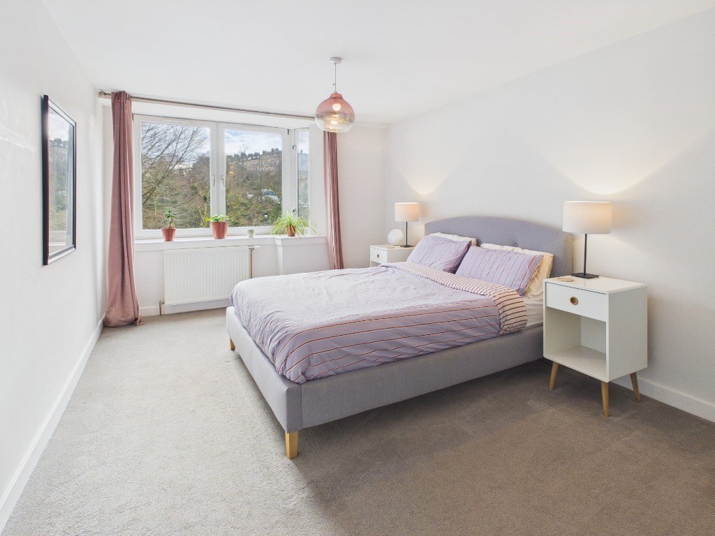 This property comprises of: a welcoming entrance hall, a spacious livingroom and a sleek, modern kitchen just off the livingroom. There are 2 spacious double bedrooms which feature windows looking over towards the Water of Leith Walkaway, 1 bedroom features a built in wardrobe and the principal has a large boxroom/walk in-wardrobe just off the bedroom with wardrobe built in. The main bathroom features modern 3 piece suite with shower over bath with shower over bath.