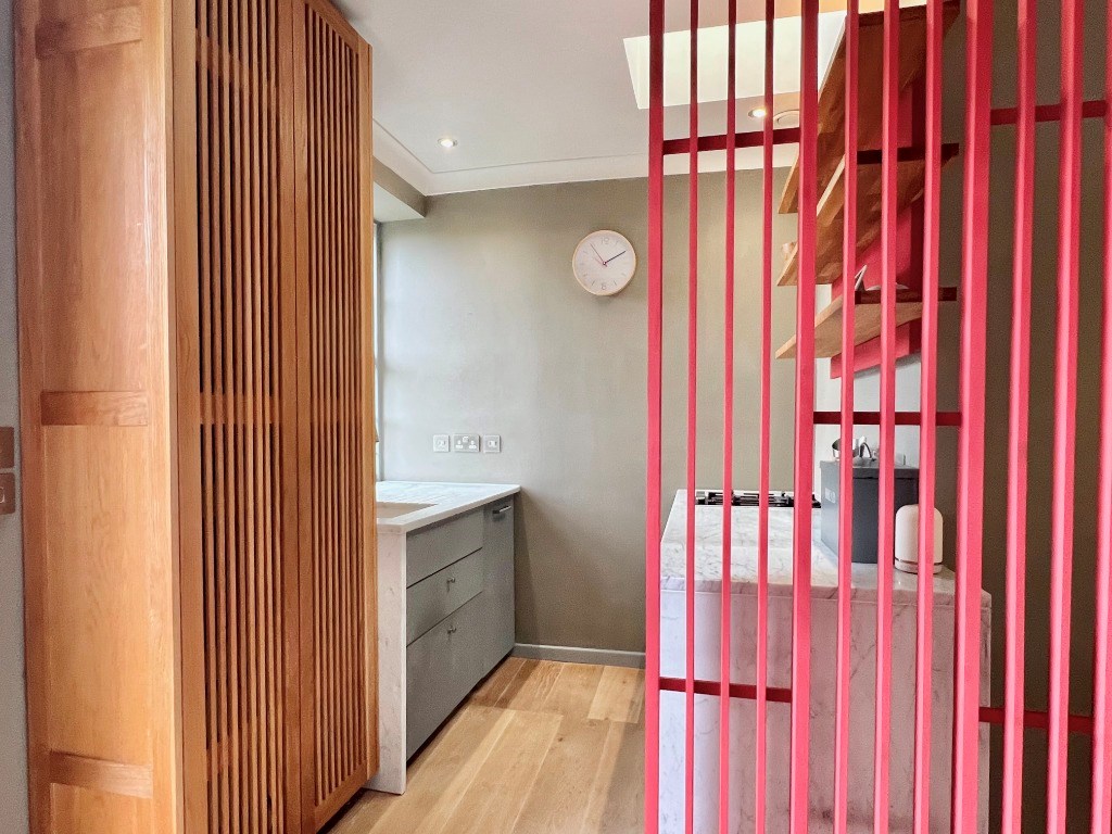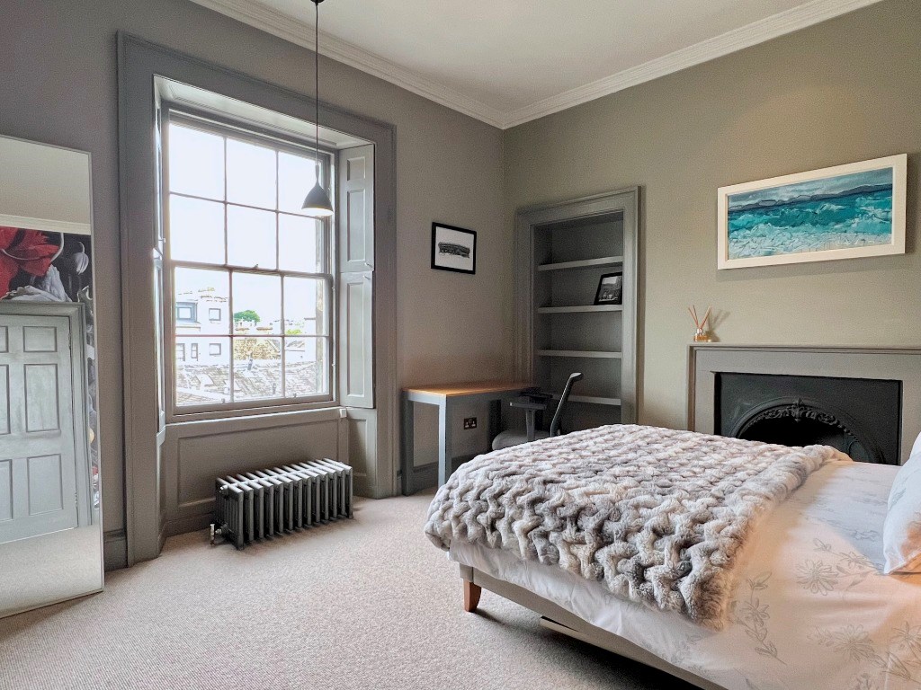 The spacious, trendy double bedroom boasts a large walk in wardrobe and feature original fireplace. There is also a walk in shower room with storage cupboard housing the washing machine.