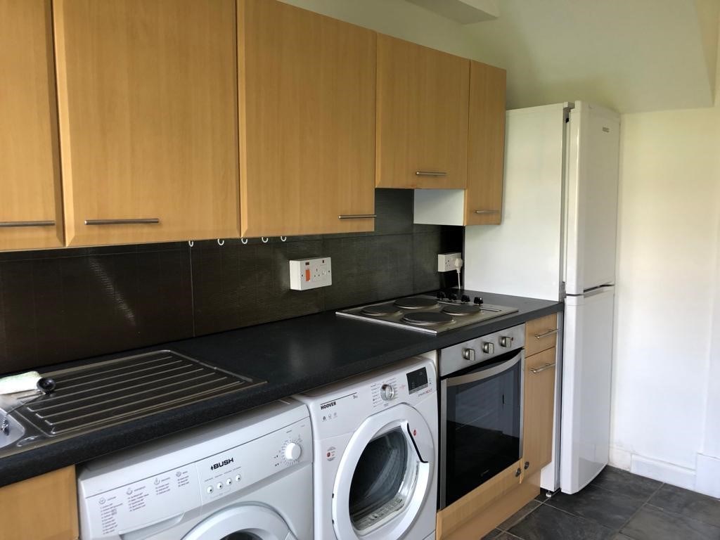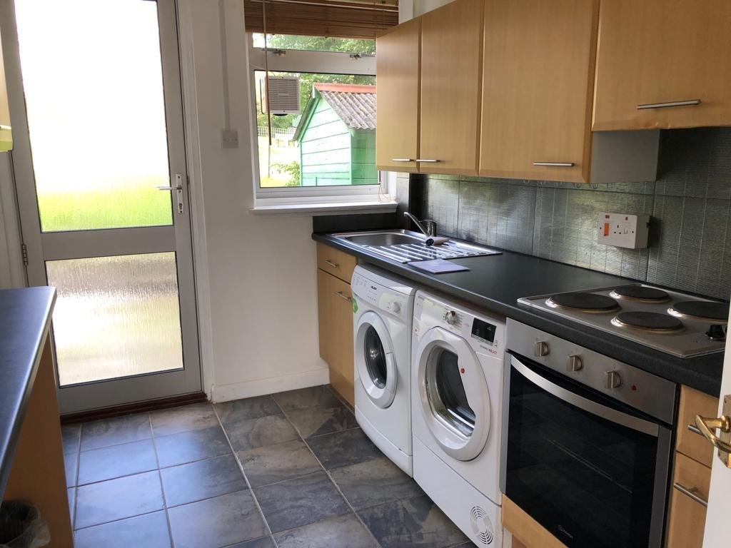 On the ground floor, the bright hallway leads to all rooms. There’s a large lounge/dining room to the front of the property, kitchen with a breakfast bar equipped with all the usual appliances including electric hob, oven, fridge/freezer, washing machine and tumble drier.