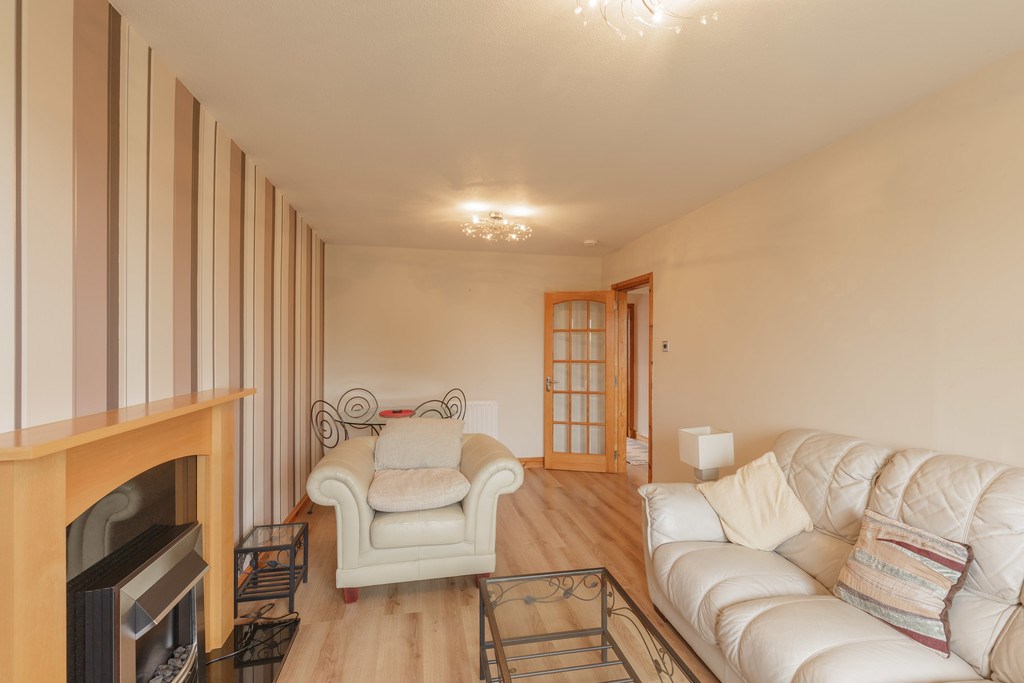 LOUNGE Spacious lounge complete with cream sofas, a stylish coffee table and a feature fireplace. The room also boasts a large window which allows for plenty of natural light to enter the property.