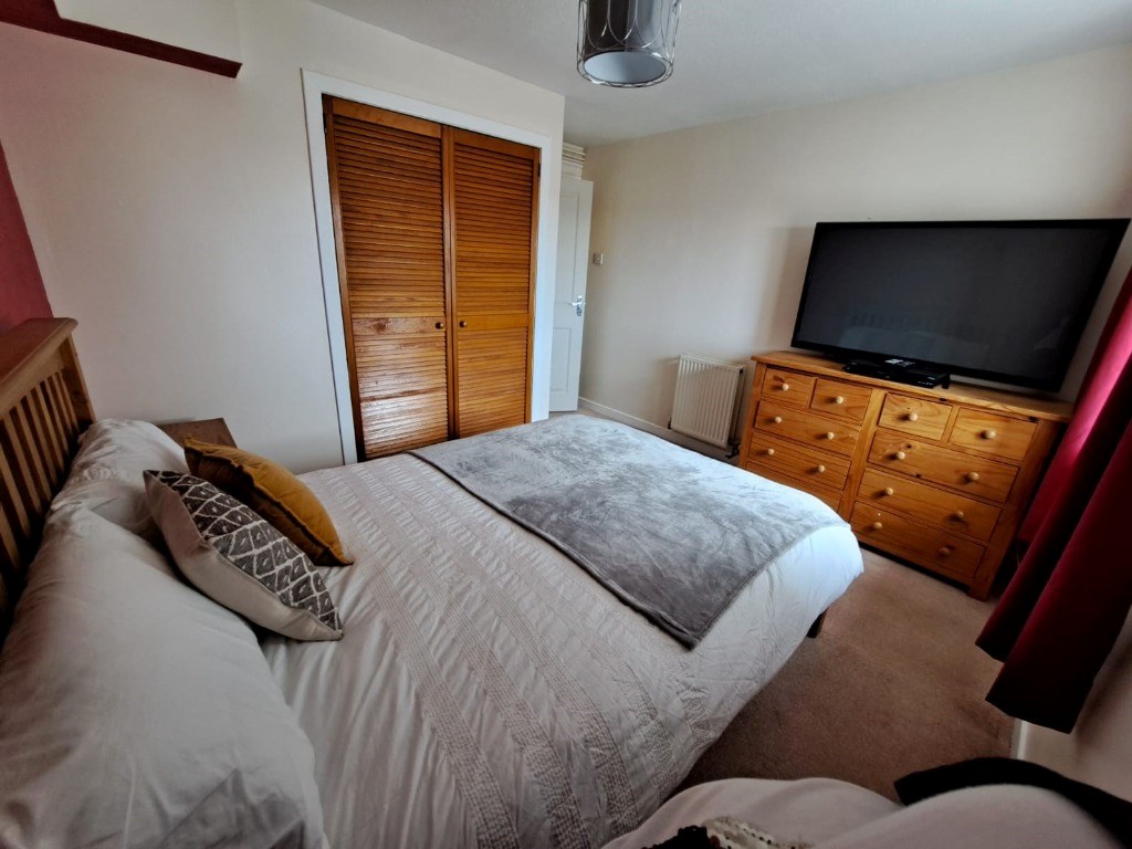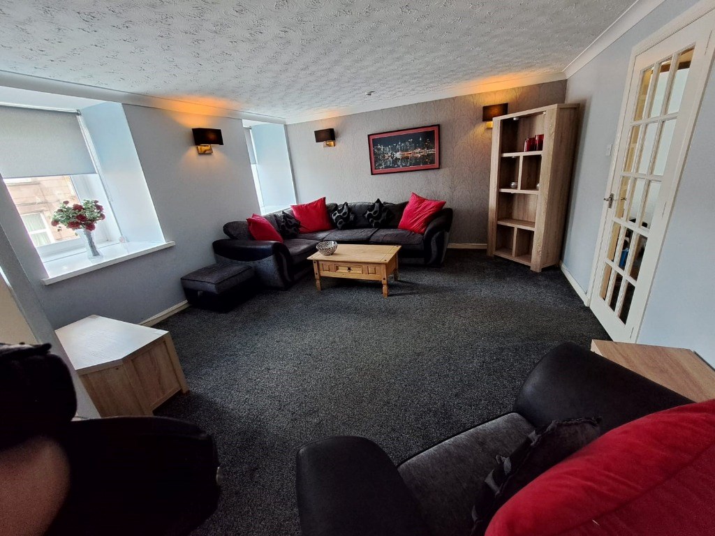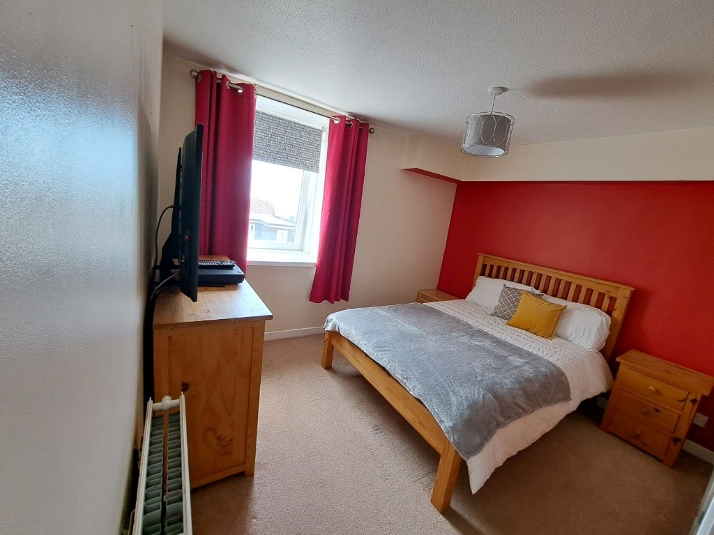 Situated on the second floor, the property has a spacious lounge furnished with a comfy corner suite, armchair and coffee table. Located off of the lounge is the kitchen which is equipped with all of the usual modern appliances including a fridge freezer, washing machine, electric hob & oven. The property boasts two double bedrooms. The master bedroom benefits from fitted wardrobes and a chest of drawers, offering plenty of storage space. Additional room which can be used as either a second bedroom or study. Completing the accommodation is a family bathroom with electric shower.