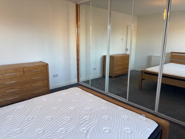 DOUBLE BEDROOM 1: (13’5" x 10’8" approx) Spacious, tastefully presented double bedroom offering an open aspect to the rear of the property. Wall-to-wall built-in wardrobes finished with mirror fronted sliding doors provide extensive hanging and shelving facilities. Co-ordinating decor and carpet, with vertical blind and curtains fitted to window. The free standing triple door wardrobe, co-ordinating chest of drawers, and two bedside cabinets are included in the sale.