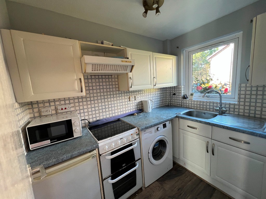 Downstairs, the living room has patio doors, opening up to the well established garden. The kitchen is fully equipped with fridge/freezer and washing machine.