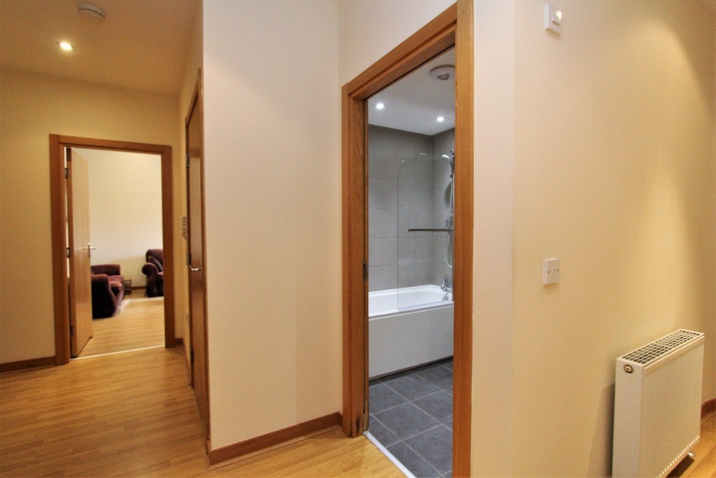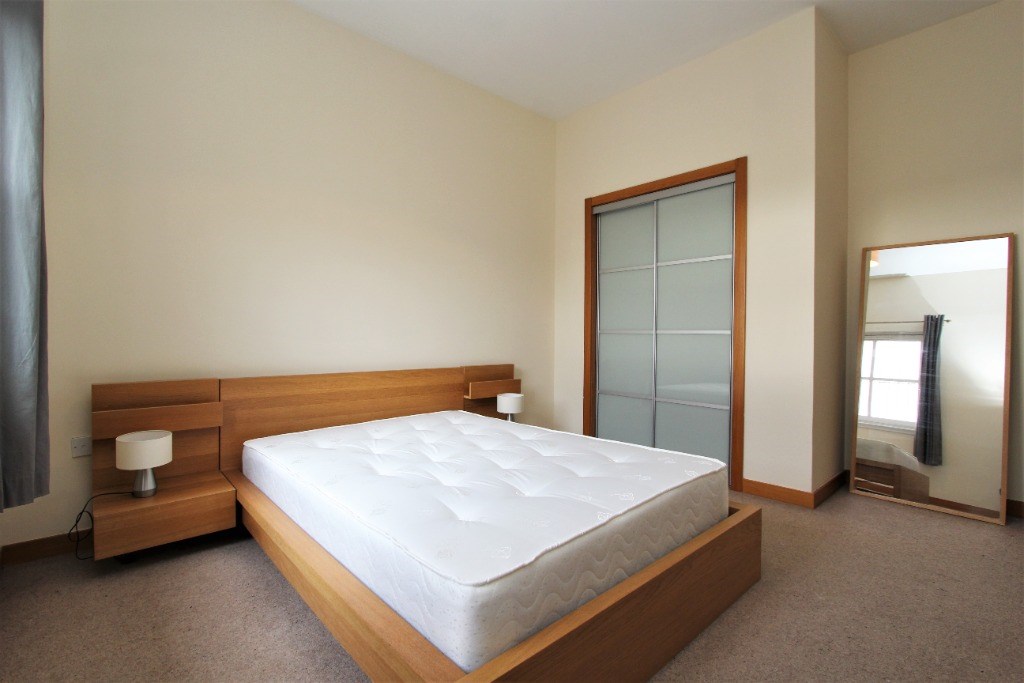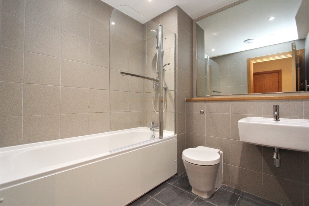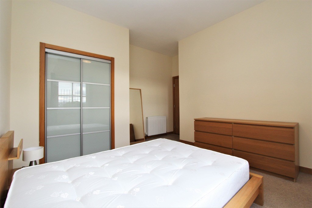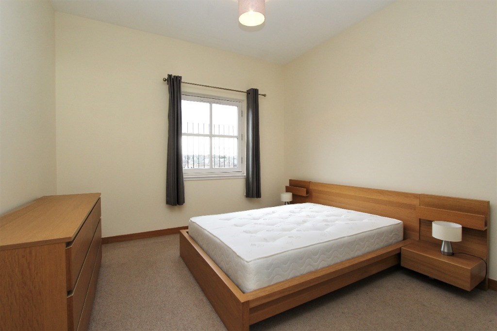 Within the flat there is a sizeable kitchen/living room which has fully fitted units with oven, gas hob, washing machine, fridge/freezer and dishwasher. The living area has two sofas and coffee table and by the window there is a dining table with four chairs. The primary bedroom is carpeted and has fitted wardrobes and open views over Leith. The second bedroom is carpeted and has fitted wardrobes. The contemporary bathroom has a bath with mixer shower over the bath and is tiled from floor to ceiling. Gas central heating, secure entry system. Factored building.