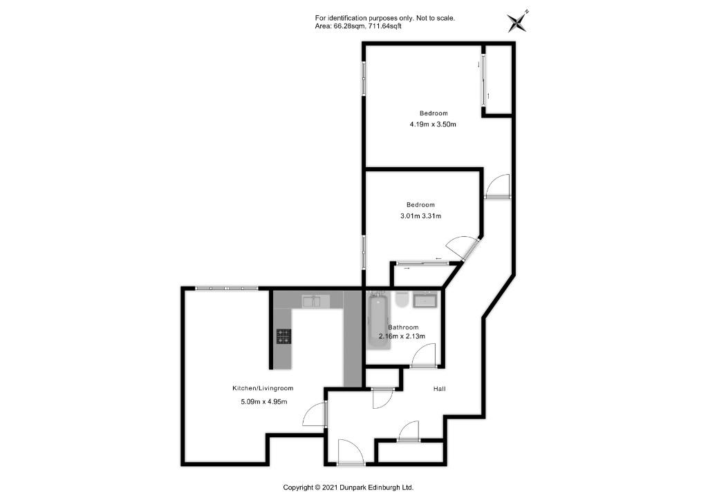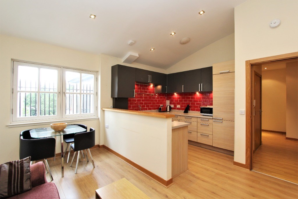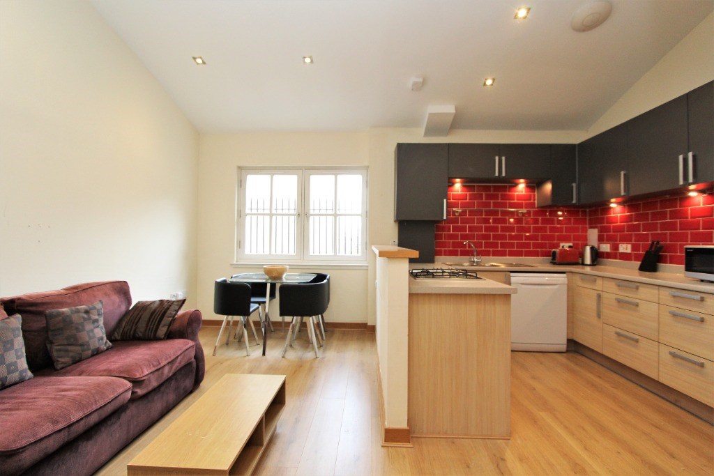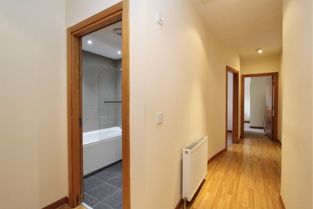 Within the flat there is a sizeable kitchen/living room which has fully fitted units with oven, gas hob, washing machine, fridge/freezer and dishwasher. The living area has two sofas and coffee table and by the window there is a dining table with four chairs. The primary bedroom is carpeted and has fitted wardrobes and open views over Leith. The second bedroom is carpeted and has fitted wardrobes. The contemporary bathroom has a bath with mixer shower over the bath and is tiled from floor to ceiling. Gas central heating, secure entry system. Factored building.
