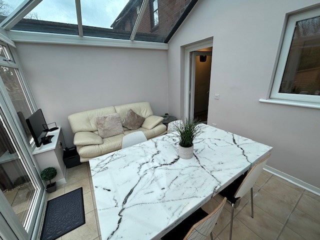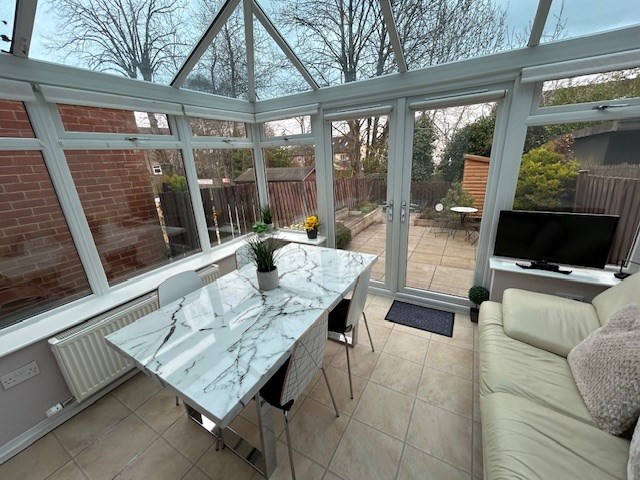 The accommodation comprises a bright and spacious lounge, a modern kitchen with space for dining, and a conservatory to the rear providing additional living/dining space with direct access to the private garden. Upstairs, there are two well proportioned double bedrooms, both benefiting from fitted wardrobes, along with a contemporary shower room.