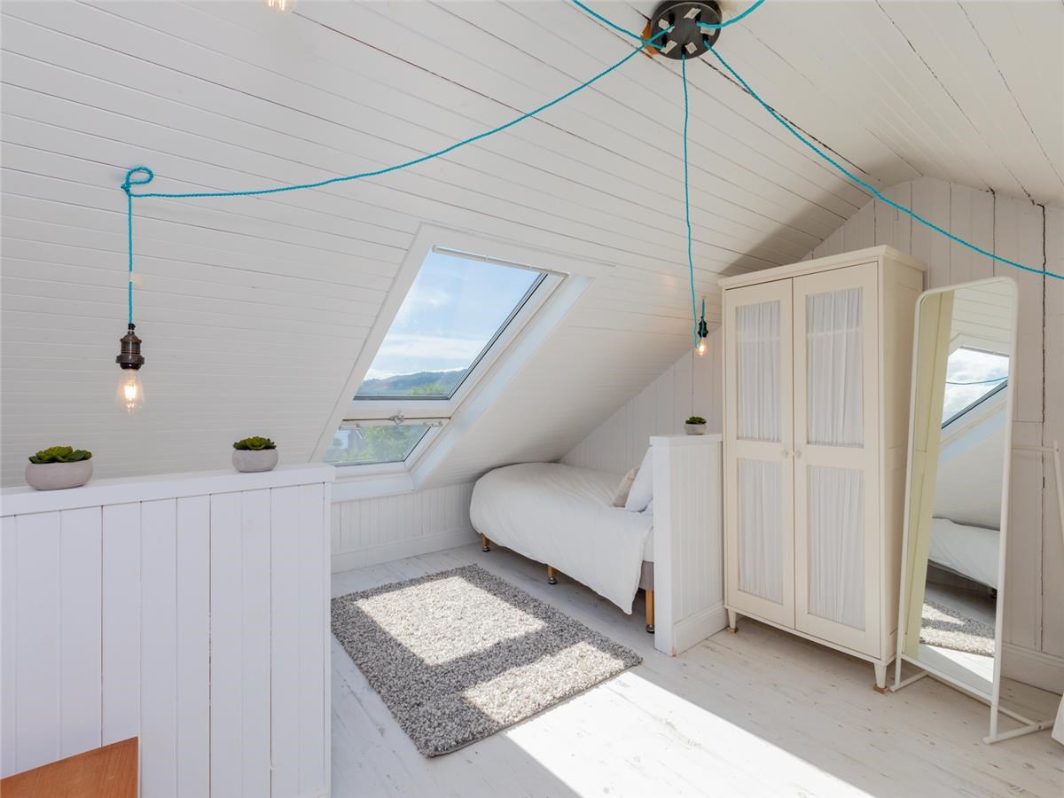Via staircase with Jute runner, 1 x velux window offering ample light, first floor landing, bedroom 3 with window to waterscape views, bedroom 4 with informal sitting area and Velux Cabrio balcony window offering uninterrupted waterscape views.