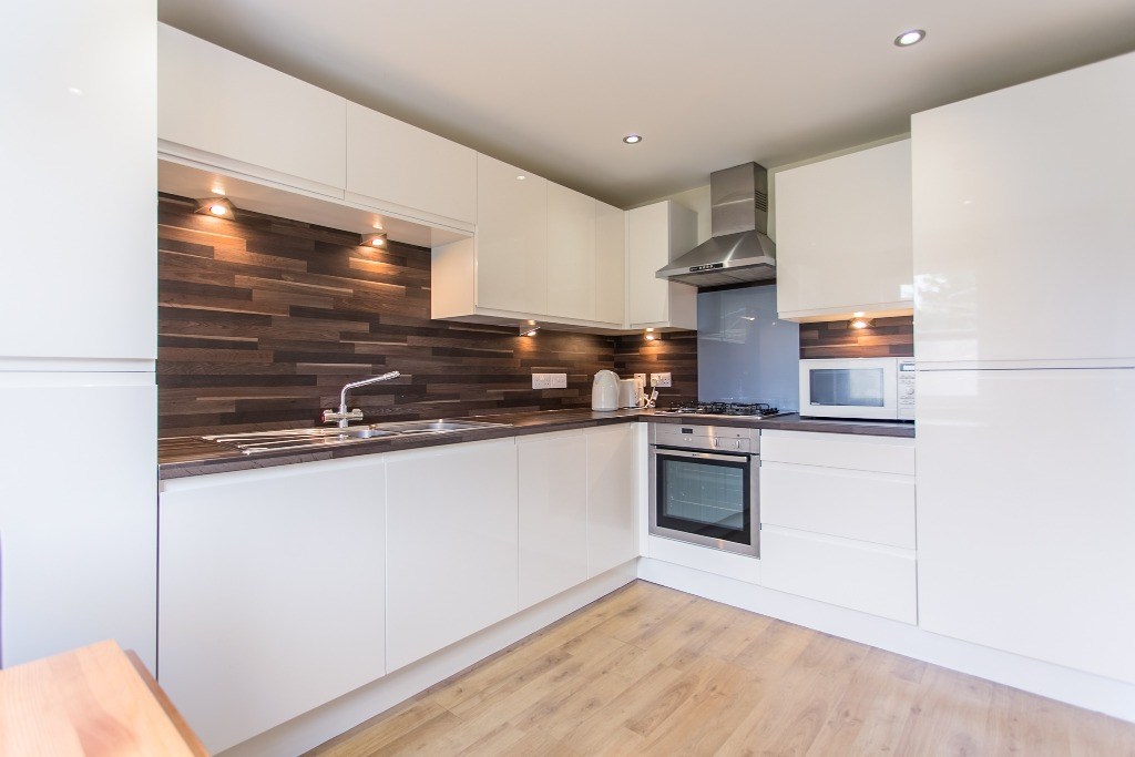 KITCHEN/DINER Extensive modern kitchen with a range of appliances and a hob and electric oven. Light base and wall units and modern counter tops, washing machine and fridge / freezer.