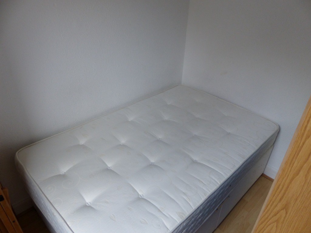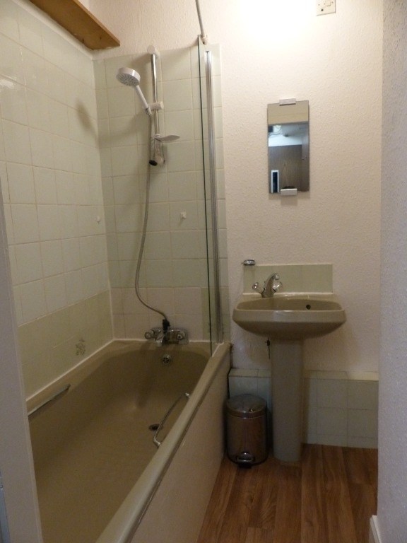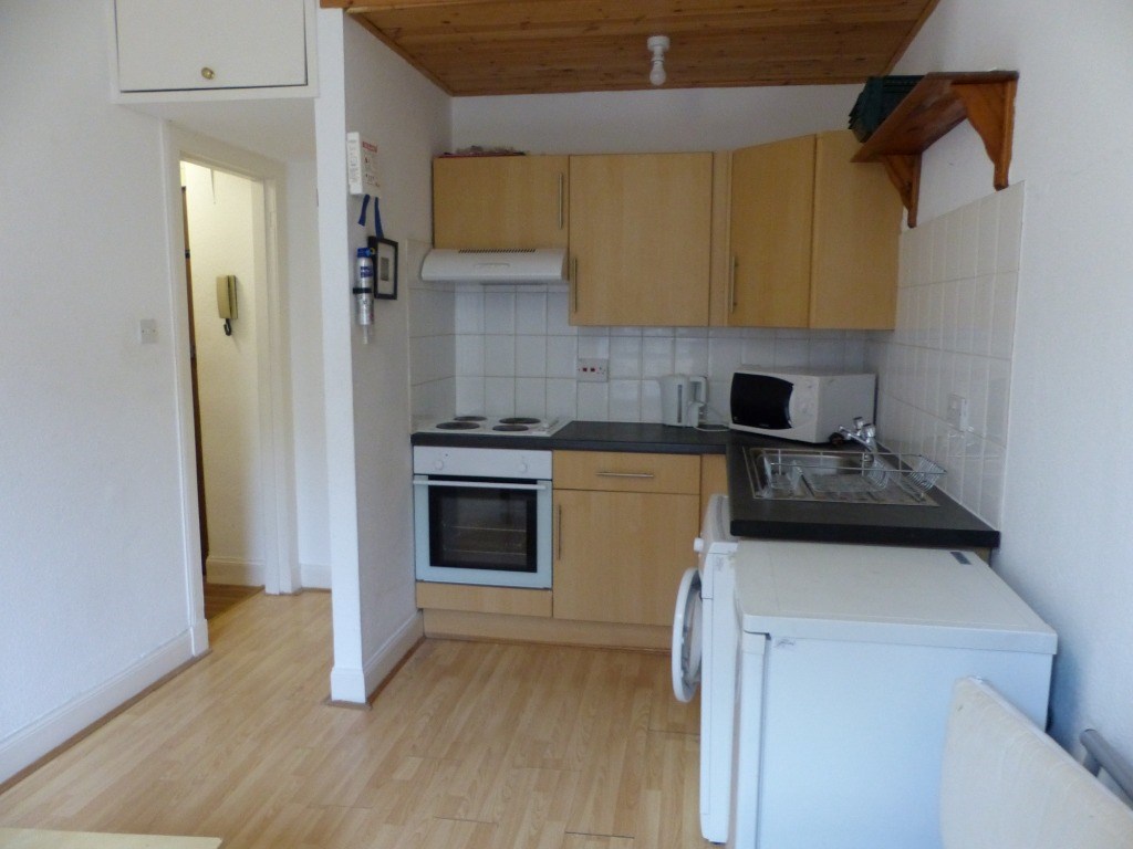 The accommodation includes a small entrance hallway leading into a bright open-plan living room and kitchen, a small double bedroom, and a bathroom with a shower over the bath. The flat further benefits from double glazing, an electric storage heater and electric panel heater, a secure entry phone system, and a full range of appliances including an electric oven, electric hob, microwave and fridge with freezer compartment. Laminate flooring is provided throughout, and there is a telephone point along with zone parking available in the area.