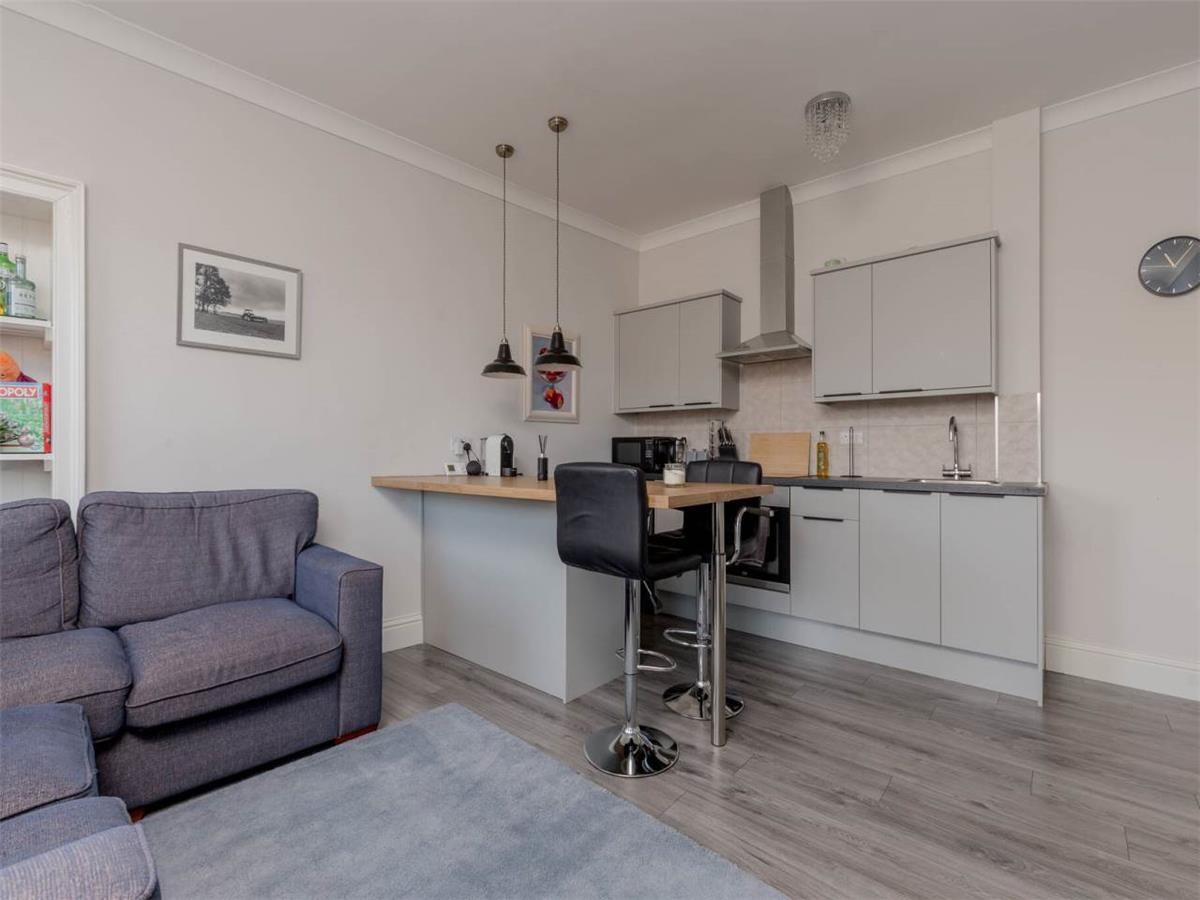 The lovely flat sits on the third floor and benefits from good views and plenty of natural light. The accommodation has been furnished tastefully and comprises: open plan kitchen/living room with dining area, kitchen with integrated appliances. A spacious double bedroom, a luxurious shower room and good storage.
