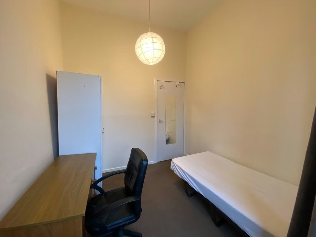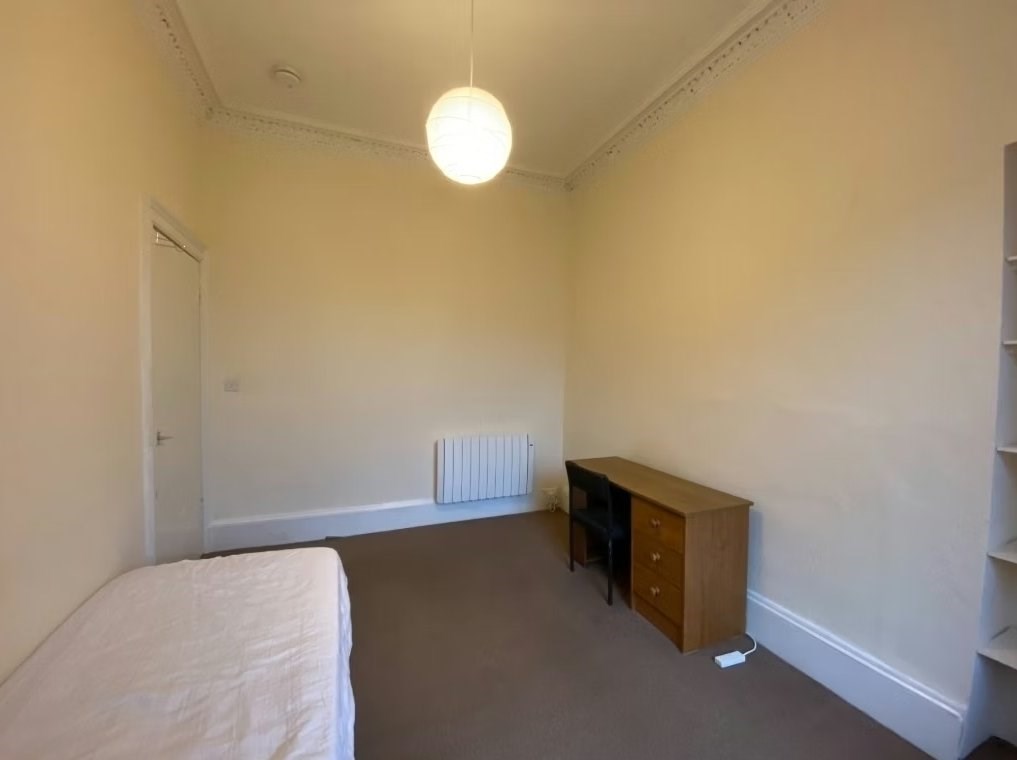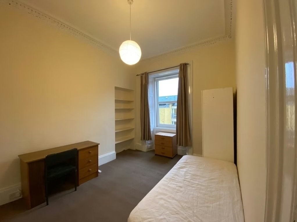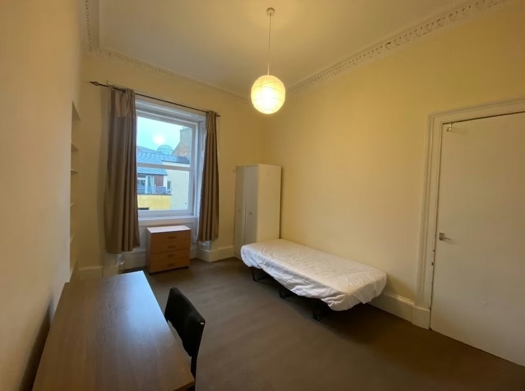 Furnished, two bedroom, top floor flat in Tollcross. Comprises are a Lounge, internal kitchen, 1 double bedroom, 1 small double bedroom with small double bed and a bathroom with shower. Benefits from electric heating and double glazing. Student and professional let.