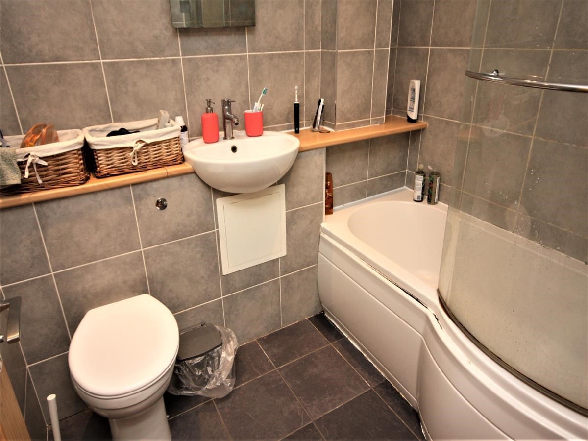 - Bathroom with shower over the bath
