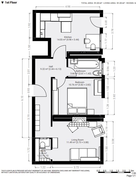 ~Total floor area = 55m²