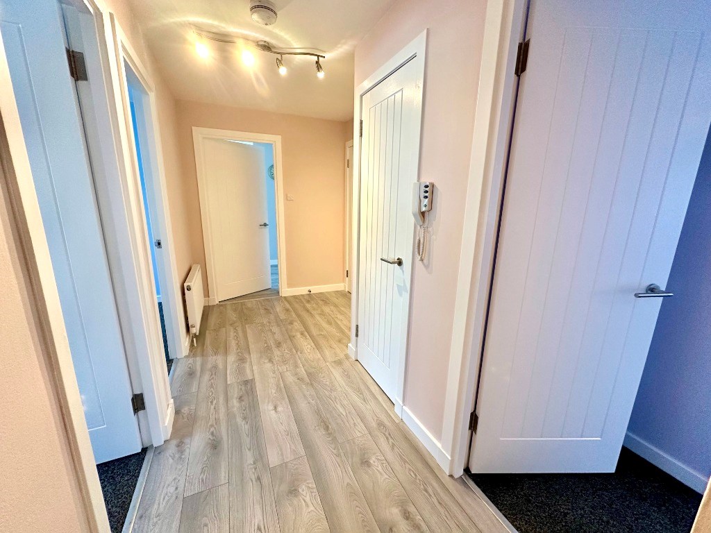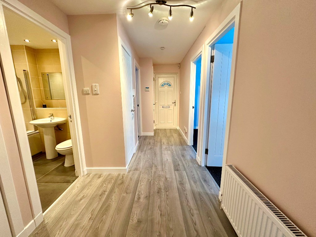 The property is entered immediately into the reception hallway which offers access to all apartments including three decent sized shelved storage cupboards and three double bedrooms - with the main bedroom having fitted sliding door wardrobe space.