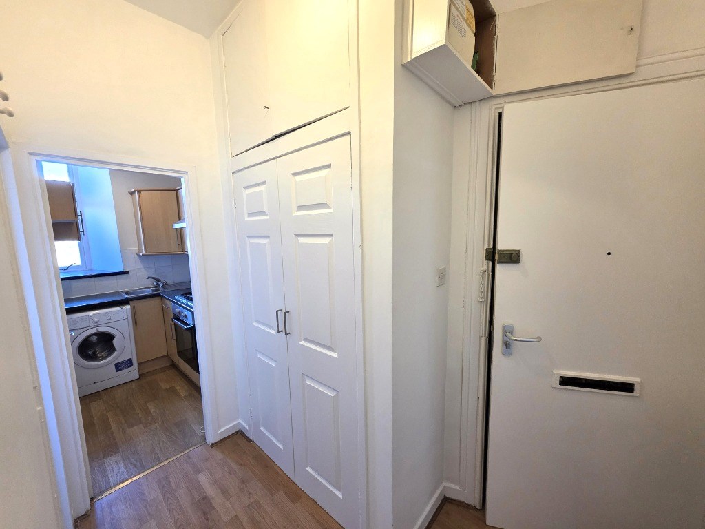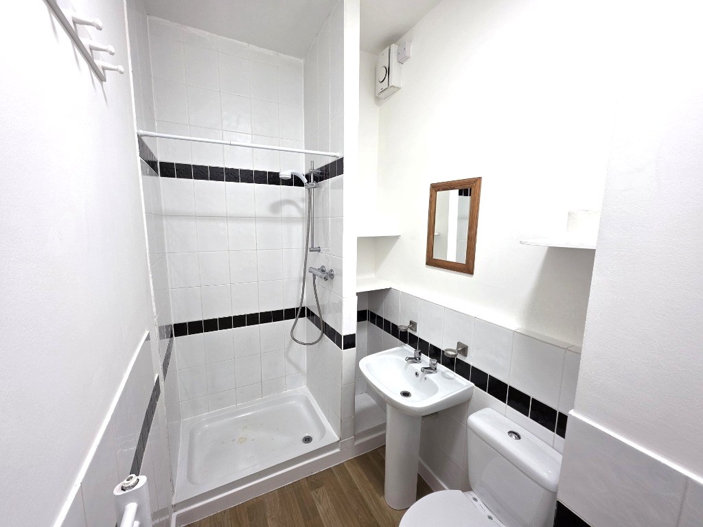 The accommodation comprises: large bright lounge space to the front of the property; galley kitchen with storage and appliances; well proportioned double bedroom; shower room with white suite and tiled shower area; outside there is a shared garden space.