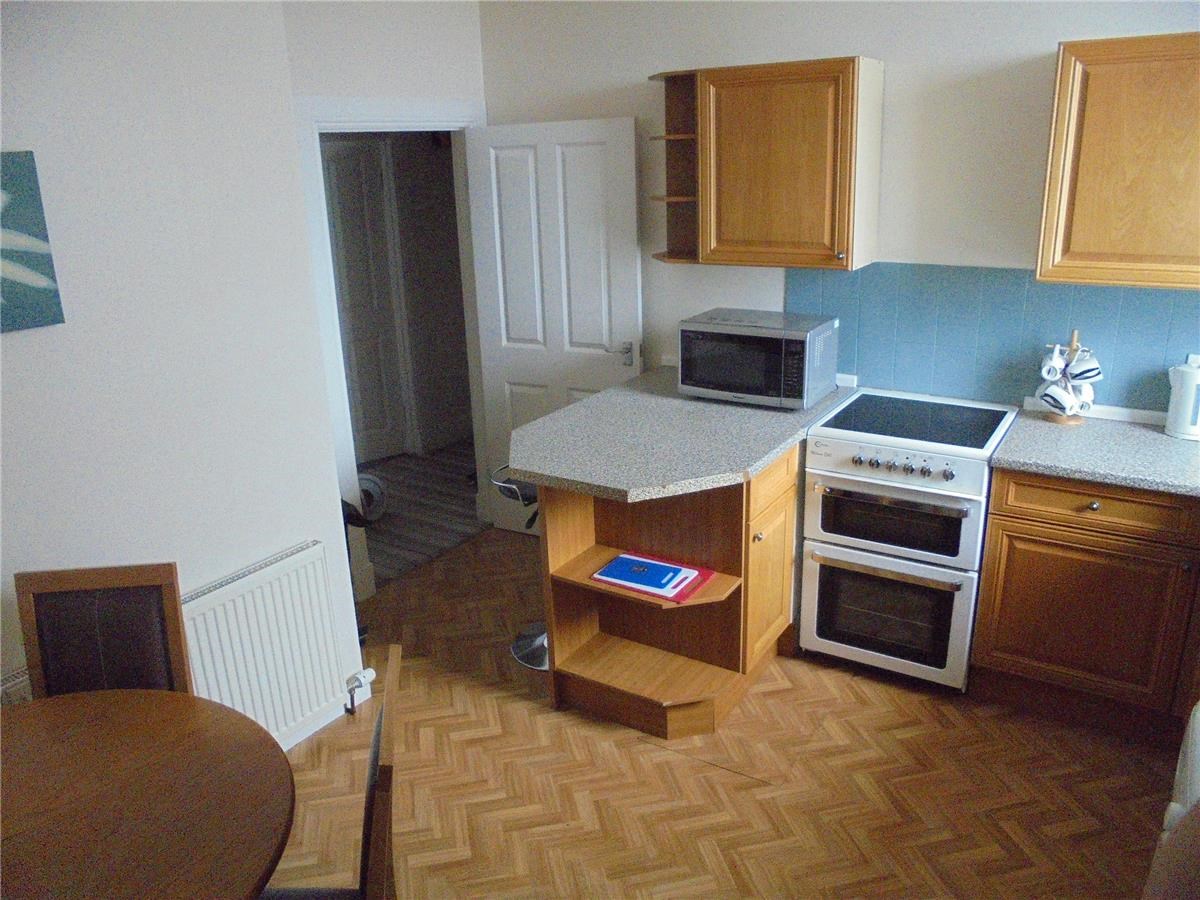 One Bedroom second Floor Flat in well maintained building within walking distance to town on on bus route with street parking. Hall, Lounge with pebble effect electric fire in feature fireplace, Large Dining Kitchen with breakfast bar and area with dining table & chairs, Double Bedroom with mirrored built in wardrobe, Modern Bathroom with shower, DG and Gas CH, Security Door Entry System, communal rear garden area and secure store in rear garden. Council Tax Band A, EPC Rating C. Entry : October 2025.