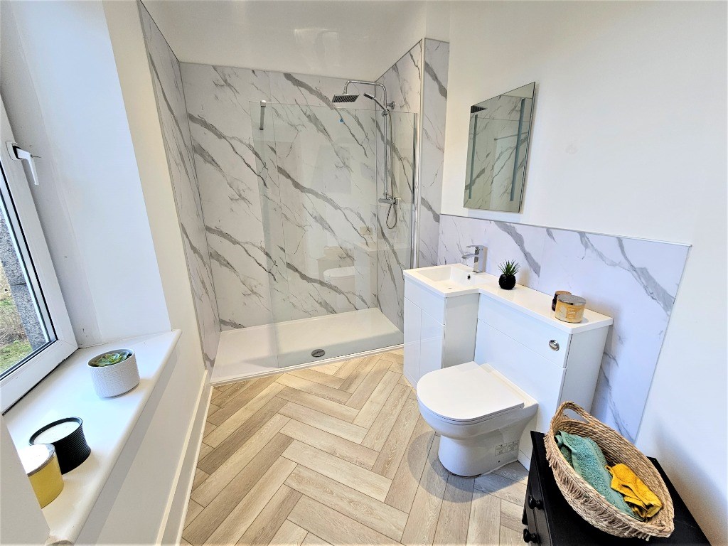 Large open plan Kitchen, Dining, Livingroom: Large double bedroom with built in storage: Spacious En-Suite shower room