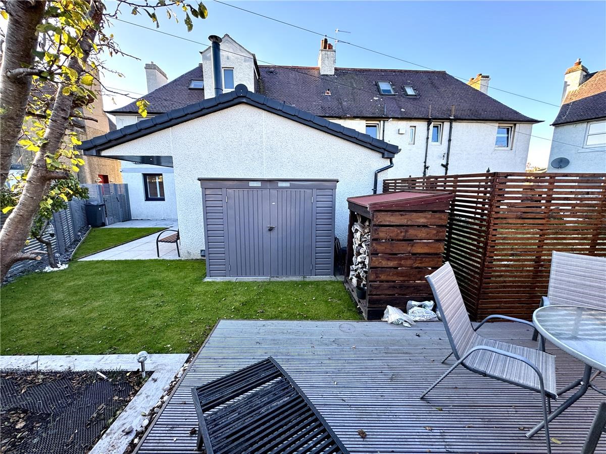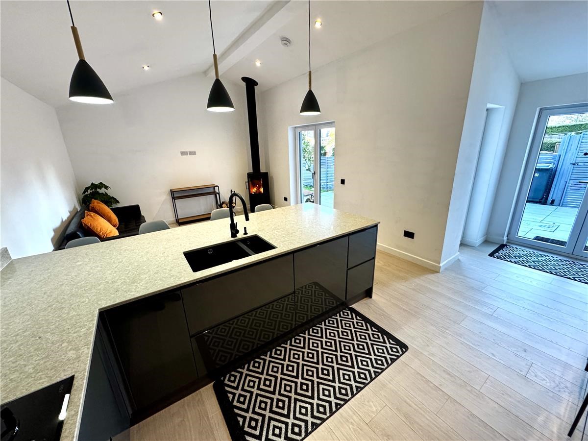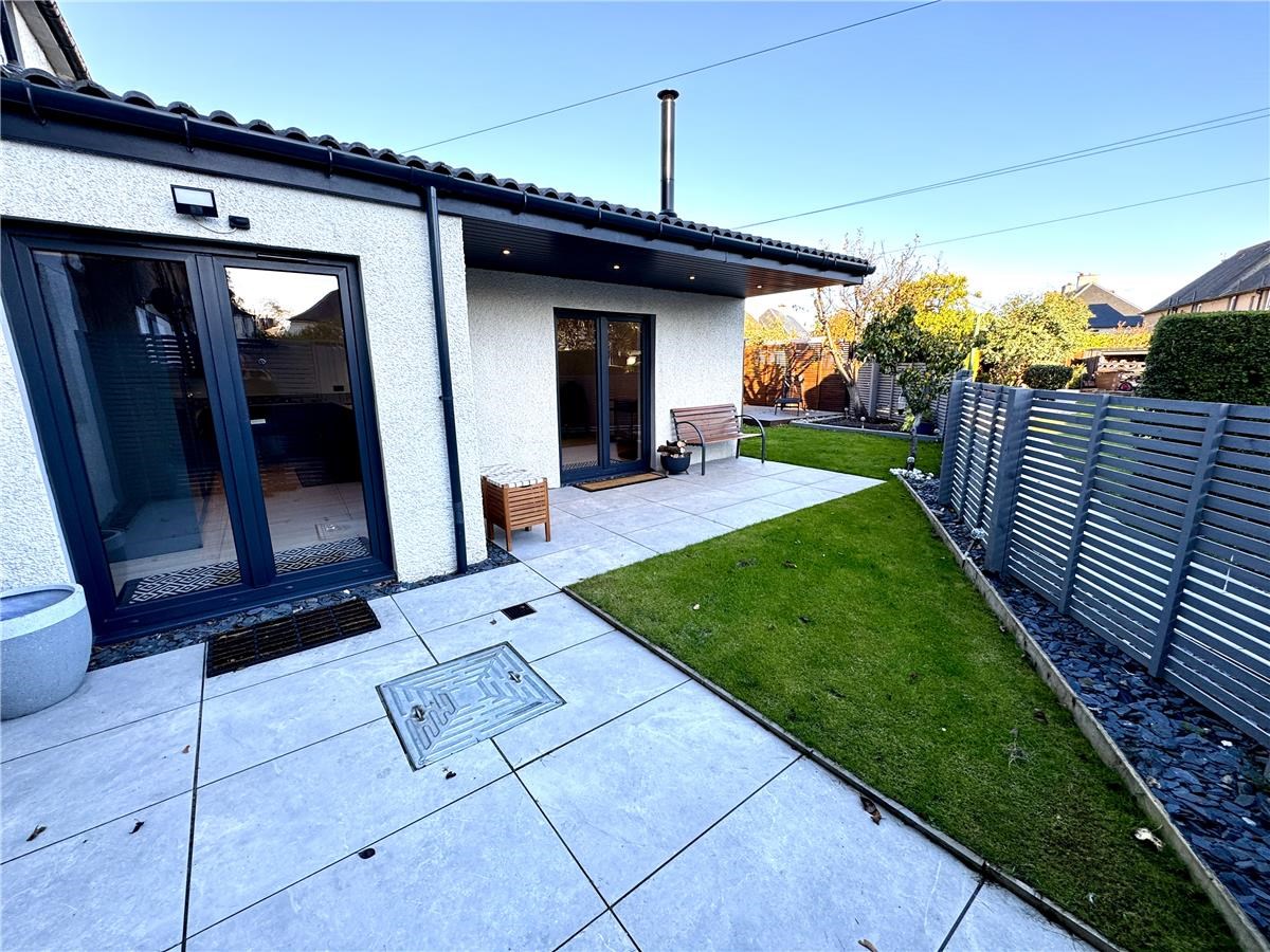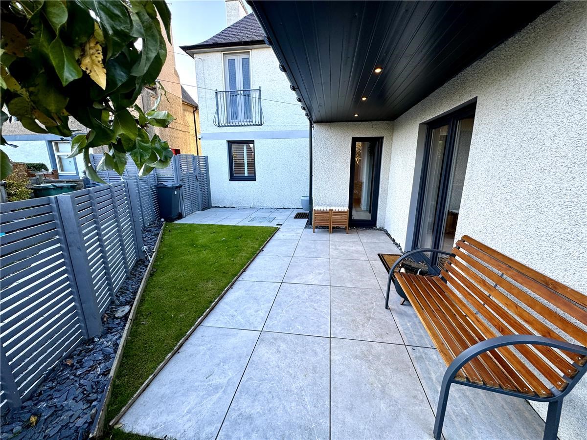 A 3 bedroom, newly renovated lower villa in a block of four, with designated car space on the driveway, free on street parking, a large front porch,  a large rear extension housing an open plan kitchen living area with double French doors accessing the private, rear south facing  garden with lawn, porcelain patio and  separate large decking area,  and a fruiting plum and pear tree.