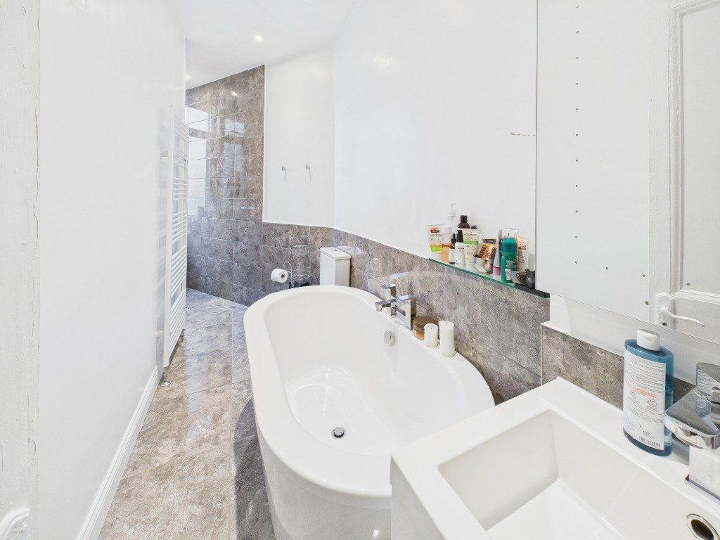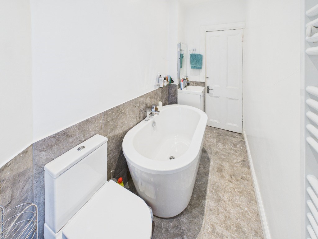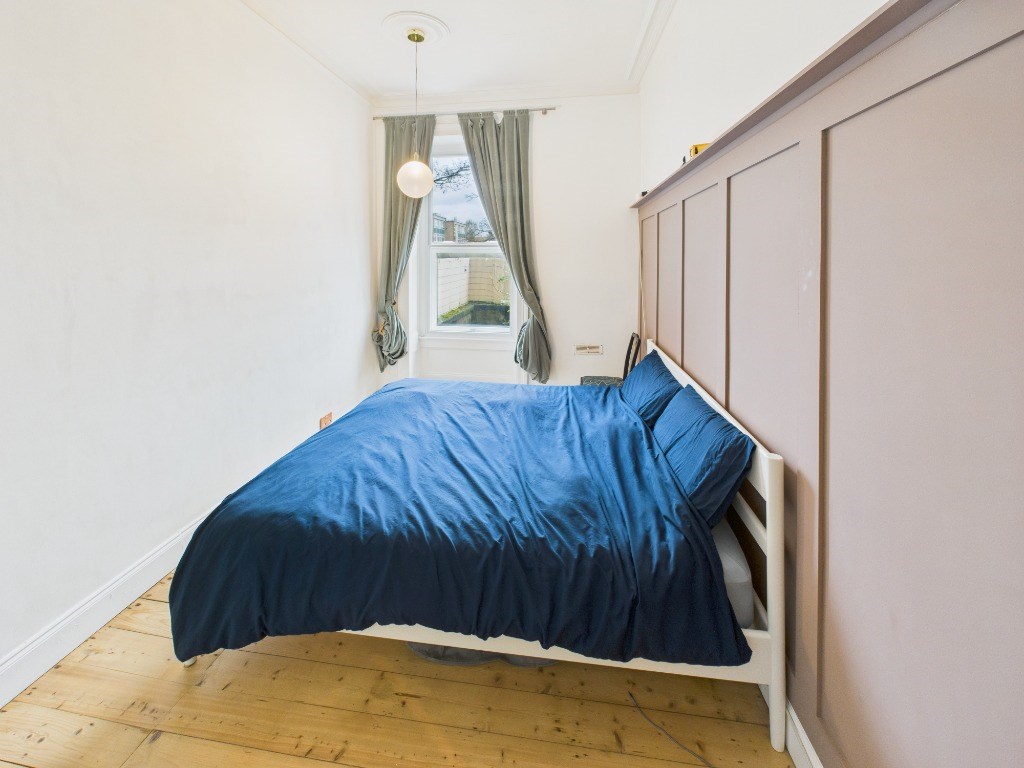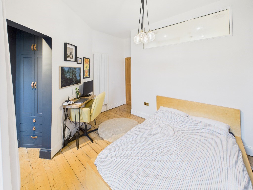 This stunning property comprises of: a private front garden which welcomes you into the vestibule and entrance hallway, a bright and spacious livingroom with original period features and bay window; separate kitchen featuring integrated appliances and pantry off; 2 double bedrooms (1 with built in wardrobe space); the bathroom features a contemporary walk-in shower along with a freestanding bath tub. The property features a large and stylishly decorated boxroom with additional storage off the hall.