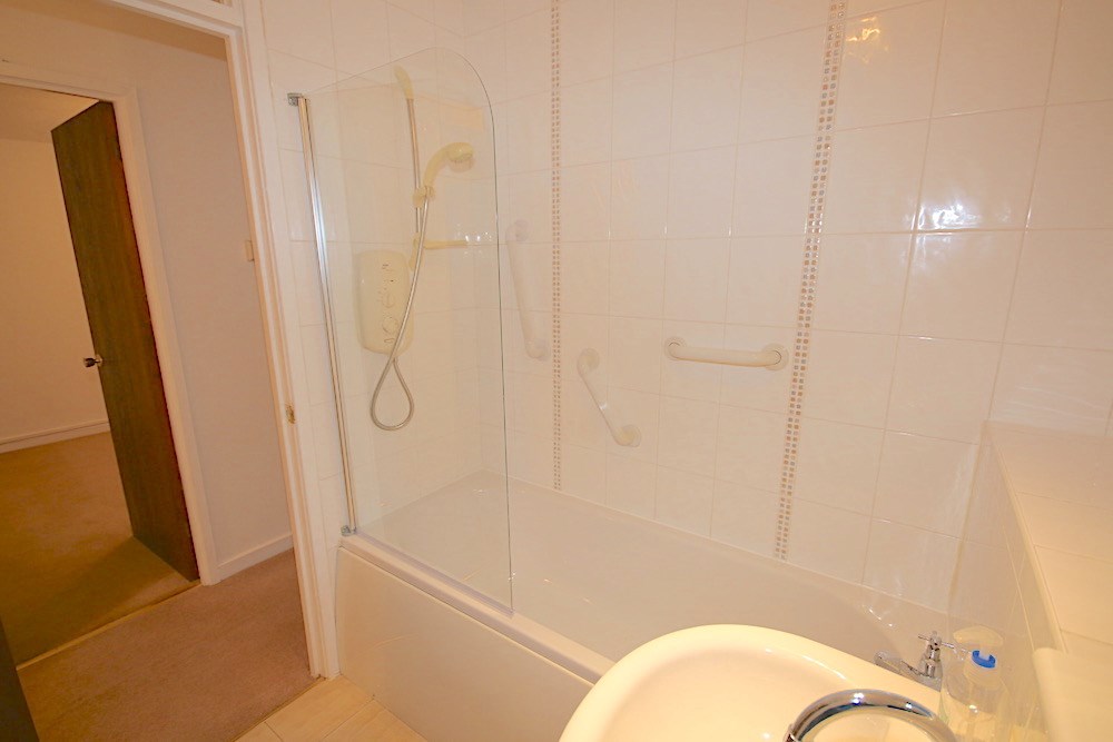 The well presented accommodation comprises - hall with two storage cupboards; south facing sitting room with pleasant outlook over the development; kitchen/breakfast room with appliances and space for a small table; double bedroom 1 with fitted wardrobes; double bedroom 2 with fitted wardrobes; and contemporary shower room.