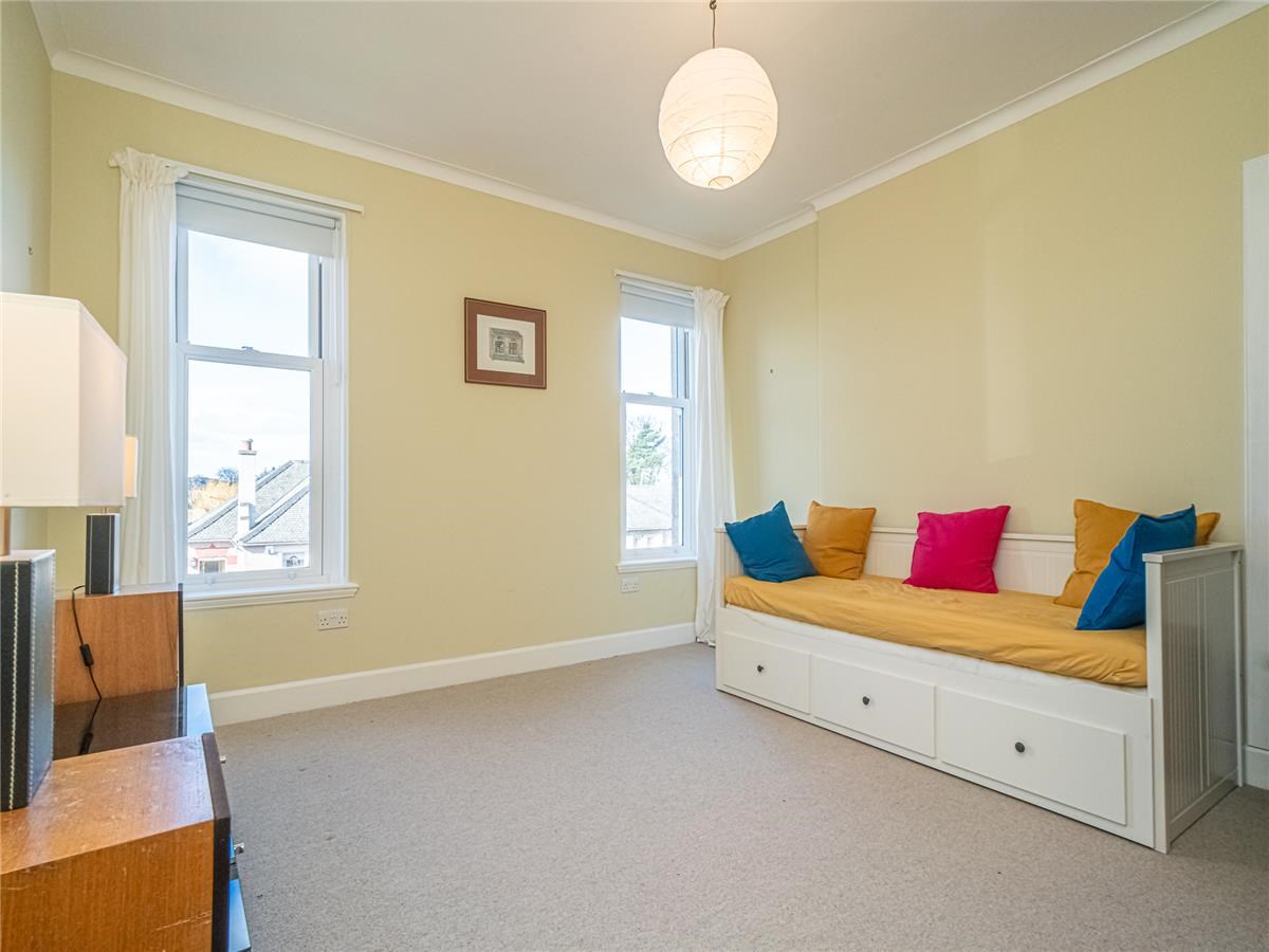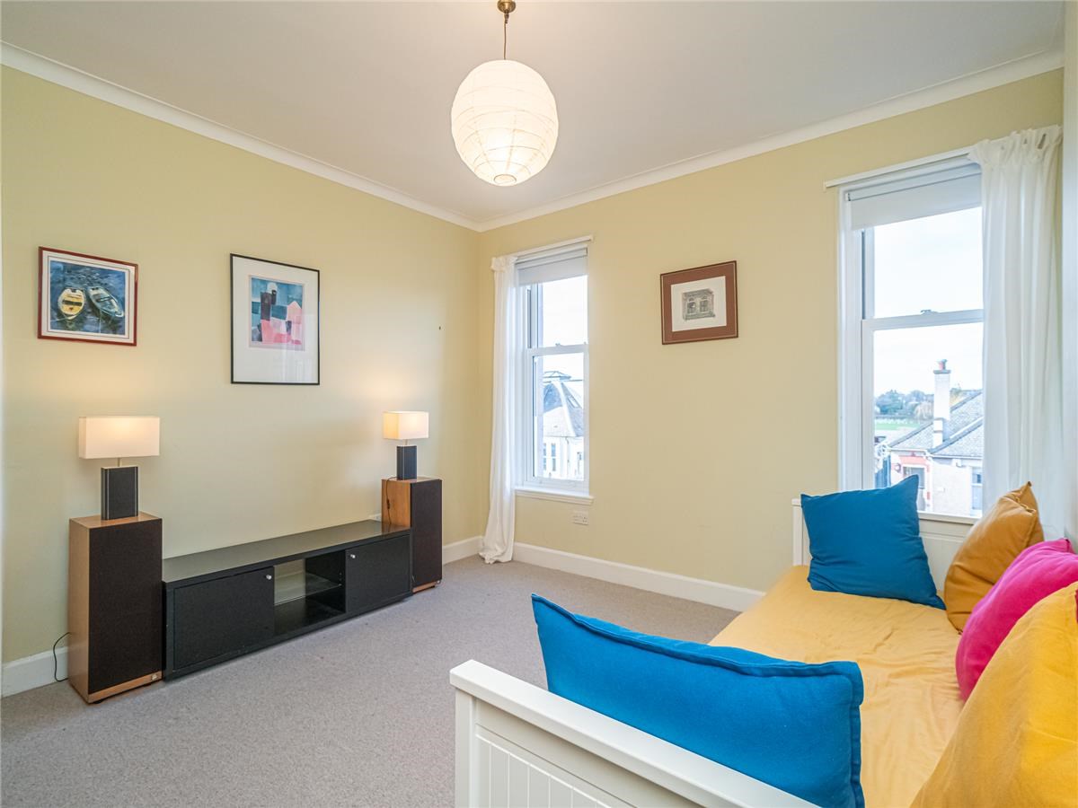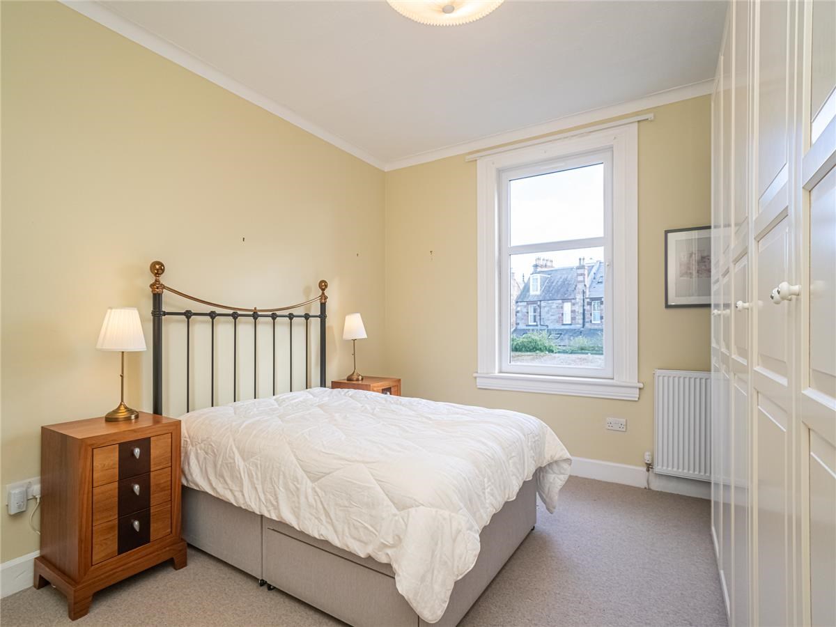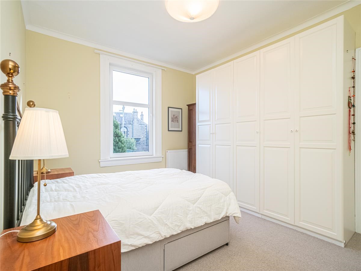 Exceptionally well presented bright and spacious three-bedroom upper villa situated in the much sought after residential area of Trinity. The property is an original purpose-built upper villa with an open outlook to the front, facing west and having a sunny area of private garden situated to the rear making a lovely a family home. The comfortable accommodation is accessed by a private entrance pathway, comprising – entrance vestibule; hall with a door also leads to a passageway giving access to the rear garden, first floor landing with storage cupboards, sitting room with large west facing bay window and a shelved walk in cupboard, dining room situated to the rear overlooking the private garden, modern fitted kitchen with appliances, up to the minute tiled shower-room with water-fall shower, large spacious double bedroom with double aspect windows, further second double bedroom with press cupboard to the rear, and bedroom three ideal for home office / study. Garden to the rear of the property is a sunny area which has been landscaped with areas of patio and lawn.