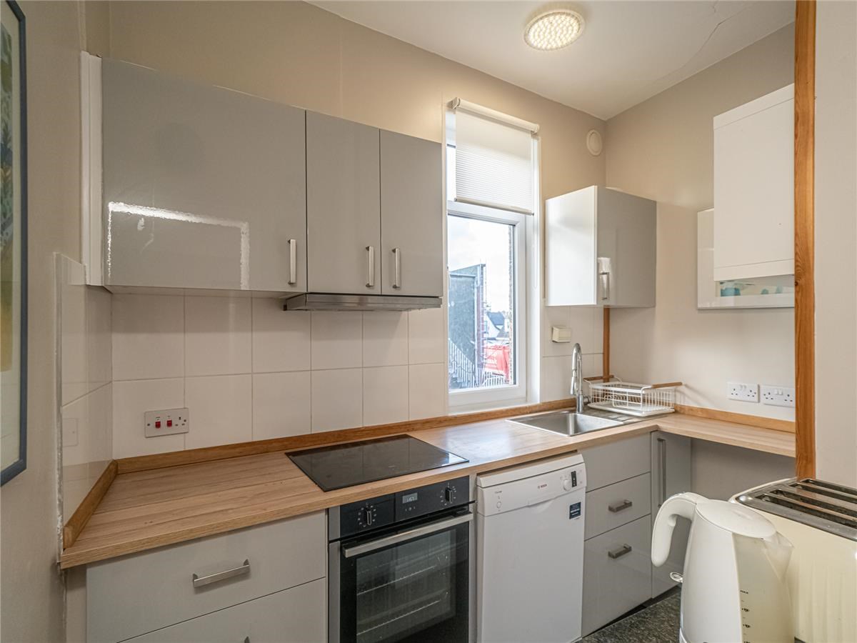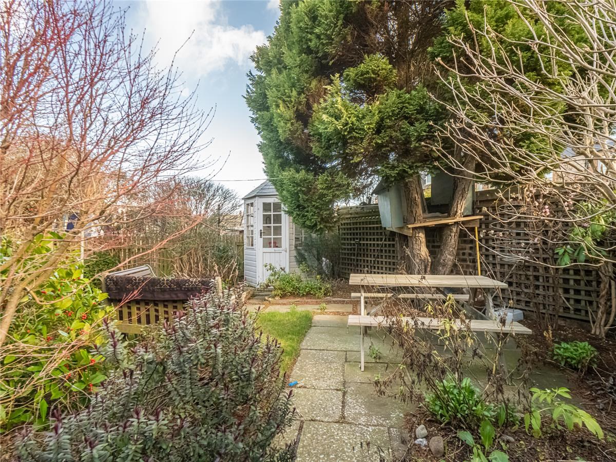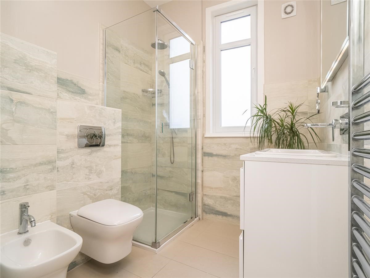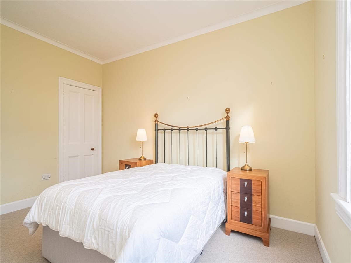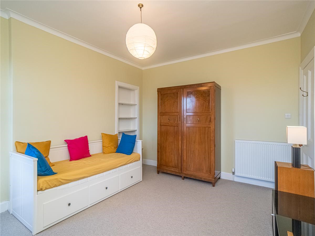Exceptionally well presented bright and spacious three-bedroom upper villa situated in the much sought after residential area of Trinity. The property is an original purpose-built upper villa with an open outlook to the front, facing west and having a sunny area of private garden situated to the rear making a lovely a family home. The comfortable accommodation is accessed by a private entrance pathway, comprising – entrance vestibule; hall with a door also leads to a passageway giving access to the rear garden, first floor landing with storage cupboards, sitting room with large west facing bay window and a shelved walk in cupboard, dining room situated to the rear overlooking the private garden, modern fitted kitchen with appliances, up to the minute tiled shower-room with water-fall shower, large spacious double bedroom with double aspect windows, further second double bedroom with press cupboard to the rear, and bedroom three ideal for home office / study. Garden to the rear of the property is a sunny area which has been landscaped with areas of patio and lawn.