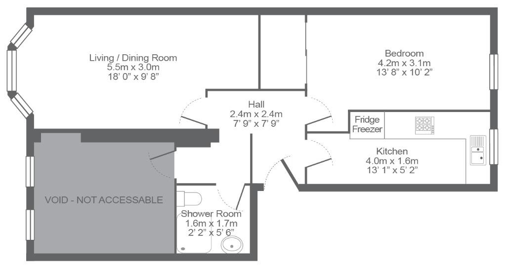 There is a generously sized living / dining room with traditional bay window, fully fitted modern kitchen with ample storage and worktop space which comes complete with integrated appliances including ceramic hob, electric oven, washing machine, fridge freezer and wine fridge. The internal shower room features modern white ceramics and a walk-in shower cubicle. The bedroom is furnished with a double bed with mattress, desk and chair and storage units and has fitted wardrobes for extra storage.