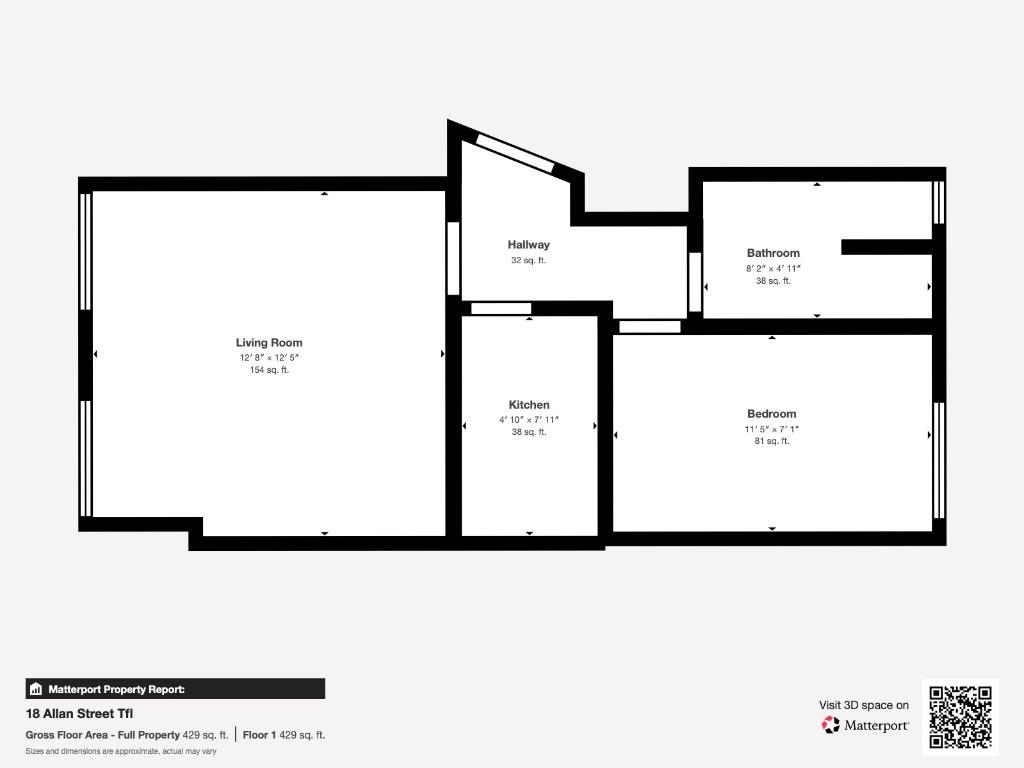 Located at 18 Allan Street TTL, Aberdeen, this 1 bed, Unfurnished flat offers 344 sq. ft. of living space on a single floor. The property comprises one bedroom (75 sq. ft.), one bathroom, a living room, kitchen, and hallway. The living area boasts warm wood flooring, creating an inviting atmosphere. Large windows allow natural light to flood the space, enhancing the sense of openness. The bedroom features neutral carpeting and a window, providing a cozy retreat. The modern bathroom is outfitted with white tiles, a shower enclosure, and essential fixtures. The kitchen, while compact, is efficiently designed with light-coloured cabinetry, integrated appliances including a washing machine, and a practical layout. Throughout the flat, crisp white walls contribute to a bright, airy feel. This well-designed space maximizes functionality, offering a comfortable living environment in a central Aberdeen location. EPC rating: D. Landlord Registration Number: Pending. Letting Agent Registration Number: 1811019.