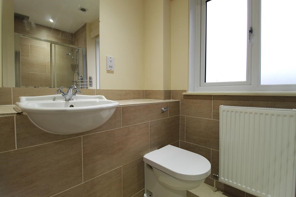 An elegant dark-wood staircase leads to the first floor, where a full-length window floods the hallway and landing with natural light. To the front of the home are 2 double bedrooms with wardrobe space, along with the family bathroom. A third bedroom-previously used as a study-enjoys natural light in abundance. The master suite, positioned at the rear overlooking the garden, boasts a generous walk-through wardrobe leading to a well-equipped ensuite shower room.