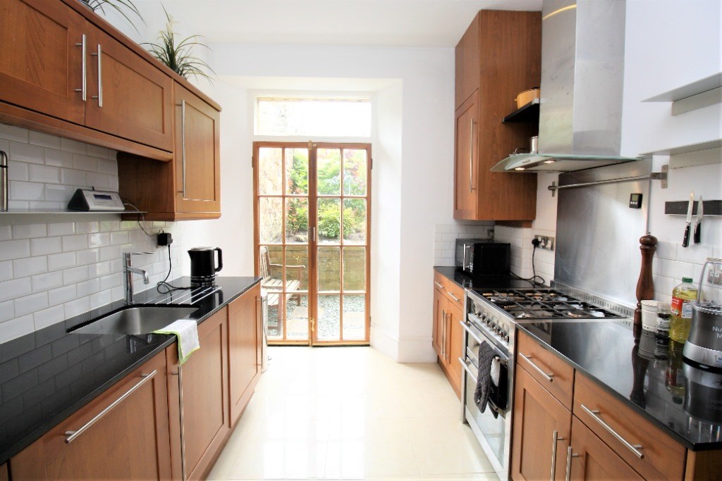 Accommodation comprises; a large and spacious double bedroom with ample wardrobe space, bay window and an ensuite shower room, a contemporary kitchen which is fully fitted with integrated appliances, and French doors leading out to the private garden to the rear. A comfortable living room with a dining table to sit 4 guests, and a further family bathroom with a shower over the bath.