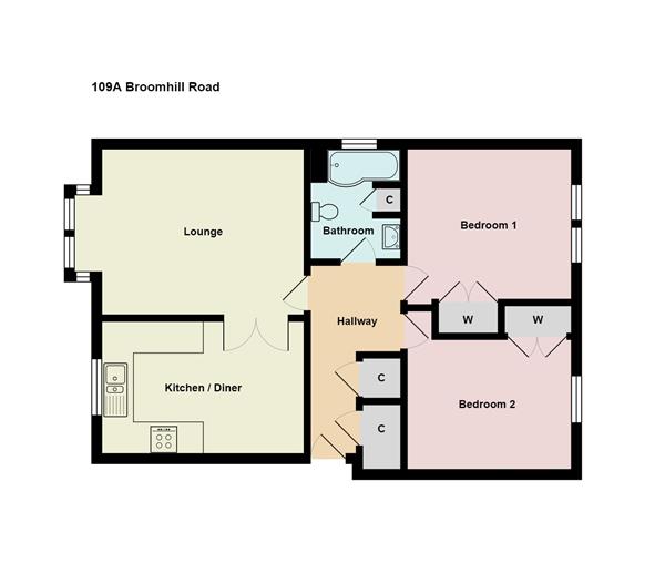 The hallway provides access to all rooms and benefits from laminate flooring and 2 storage cupboards, The spacious lounge also benefits from laminate flooring and an electric fire. The dining kitchen has been fitted with an ample range of base and wall units together with appliances. There are 2 double bedrooms that both have built in wardrobes and the bathroom benefits from having a shower over the bath.The property is fitted with Gas Central Heating and Double Glazing. UNFURNISHED