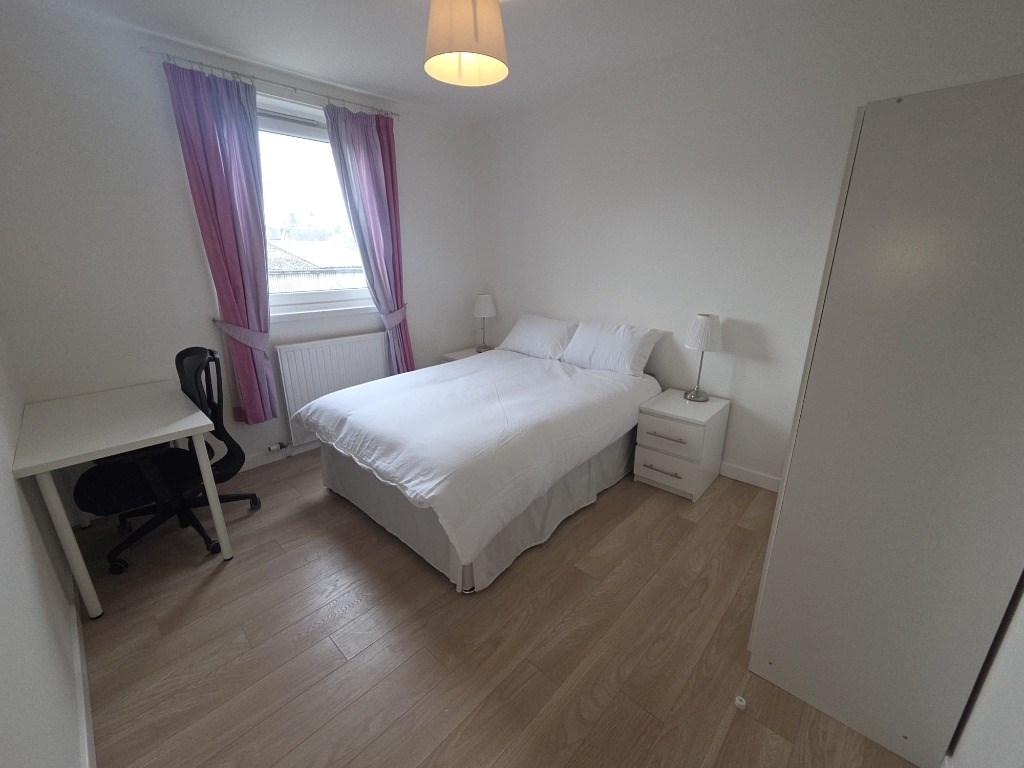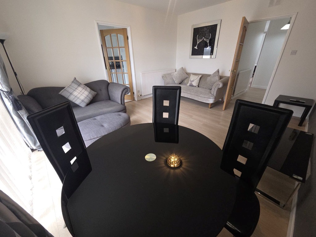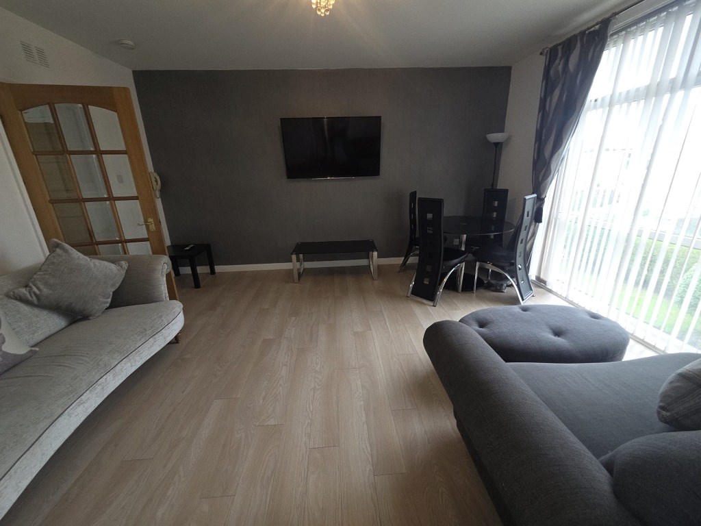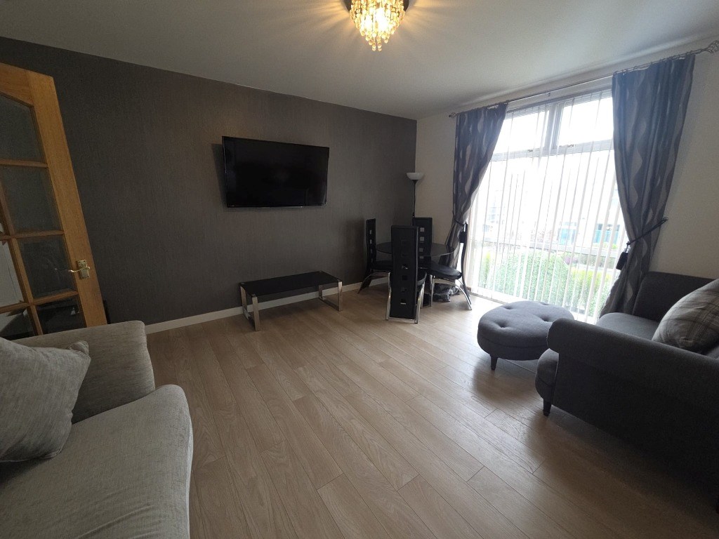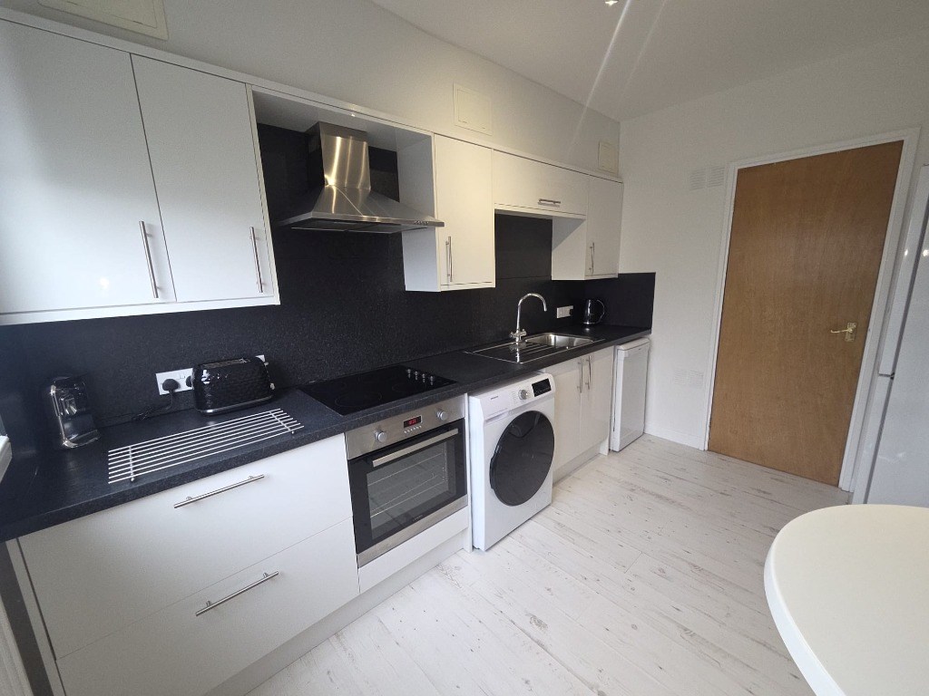 We are delighted to offer for lease, this fully furnished two bedroom apartment located on Broomhill Road. Situated on the first floor, the sizeable lounge features two sofa’s, dining table and four dining chairs along with a large wall mounted tv. The kitchen is bright with modern white base and wall units with black worktops, high top table and two bar stools. The kitchen is fitted with the usual appliances such as washing machine, dishwasher, electric oven and hob. The property has two double bedrooms one king size which has a wall mounted tv, and en-suite with shower cubicle. The second double bedroom is light and bright with wardrobe and desk for working from home. Completing the accommodation is the bathroom with bath and shower over the bath. The property boasts a lovely wooden type flooring throughout and decorated to a high standard. Externally there is one private parking space at the rear of the property.
