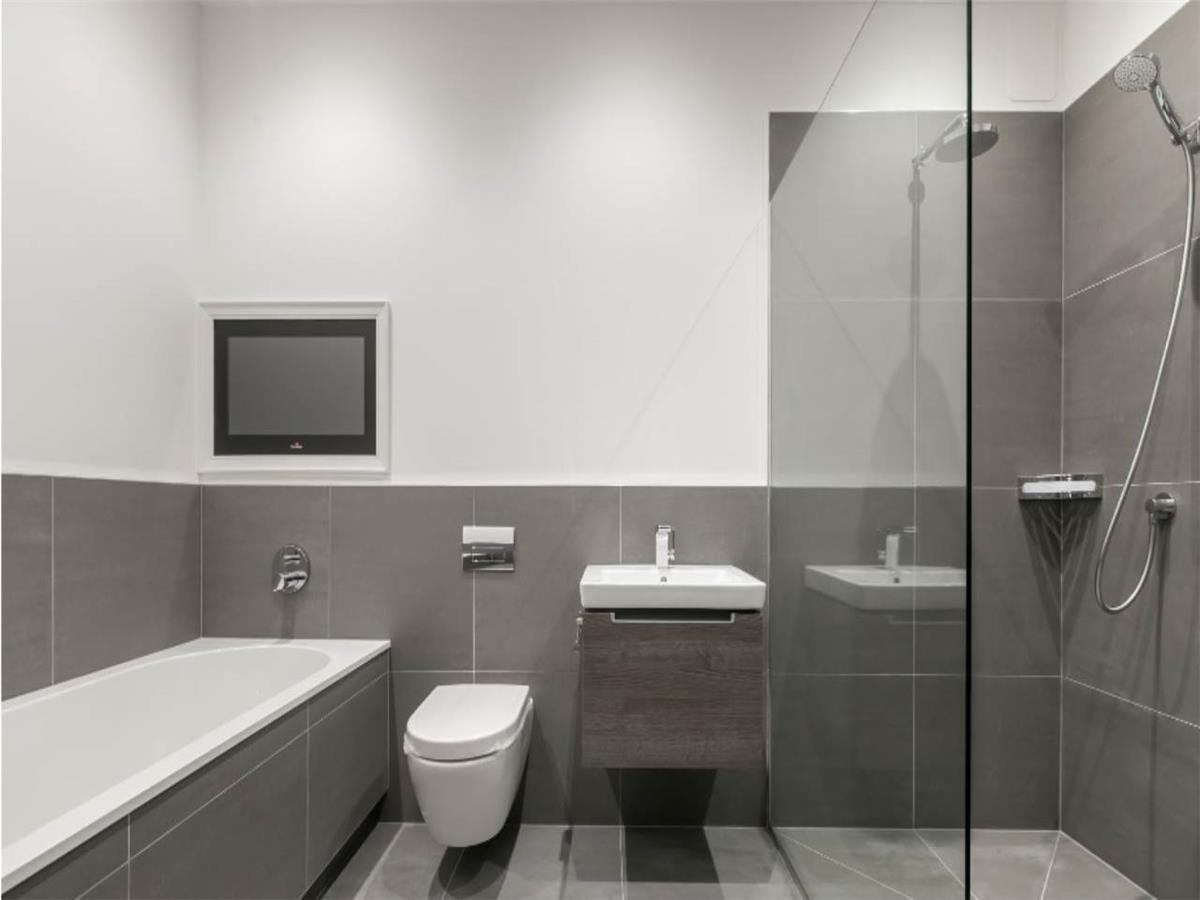 Entrance hall with both bedrooms to the front of the building. Master bedroom with en-suite, Family bathroom, Kitchen/Breakfast room and drawing room. The livingroom is flooded with natural light with floor to ceiling windows. The property has a Sonos surround sound system through out and great outdoor space.