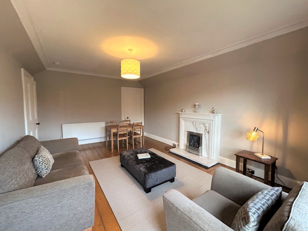 This bright second floor apartment is comprised of two double bedrooms, a large sitting room with dining area and gas fireplace, a new fitted kitchen and new shower room. There is a small box room which could be utilised as a wardrobe or study.