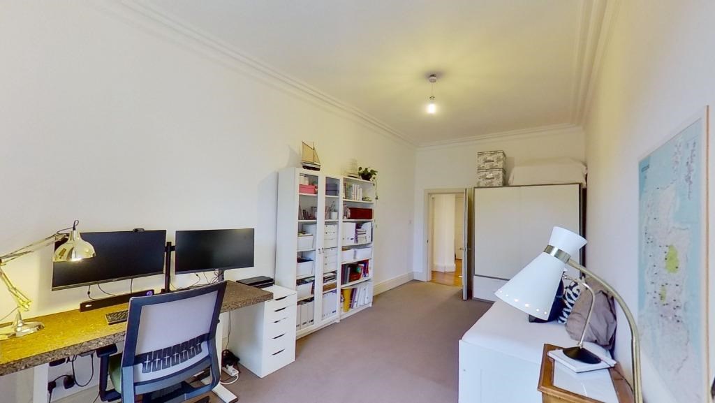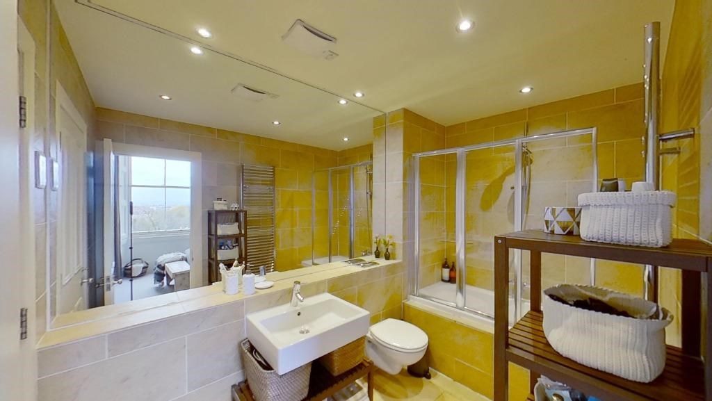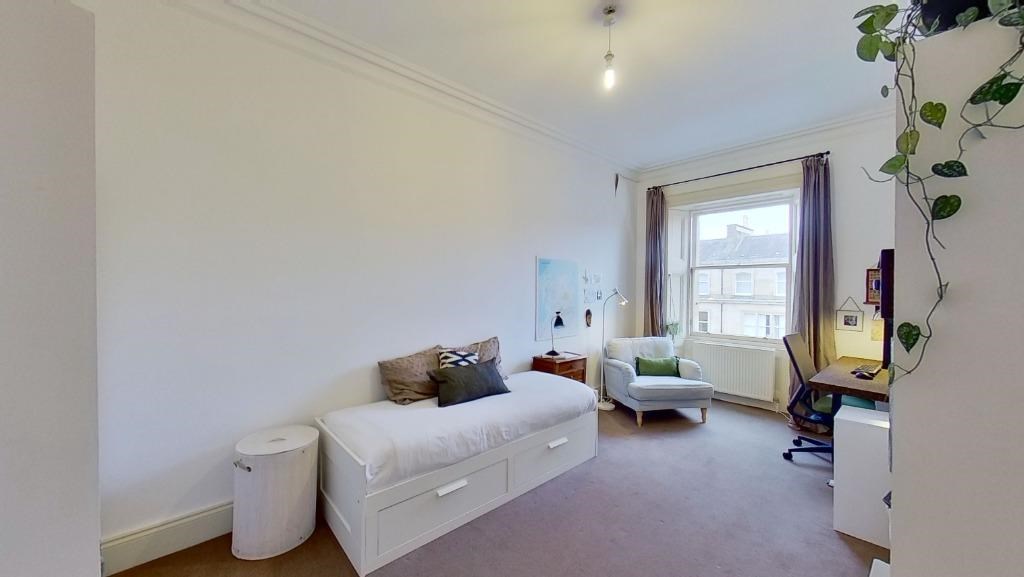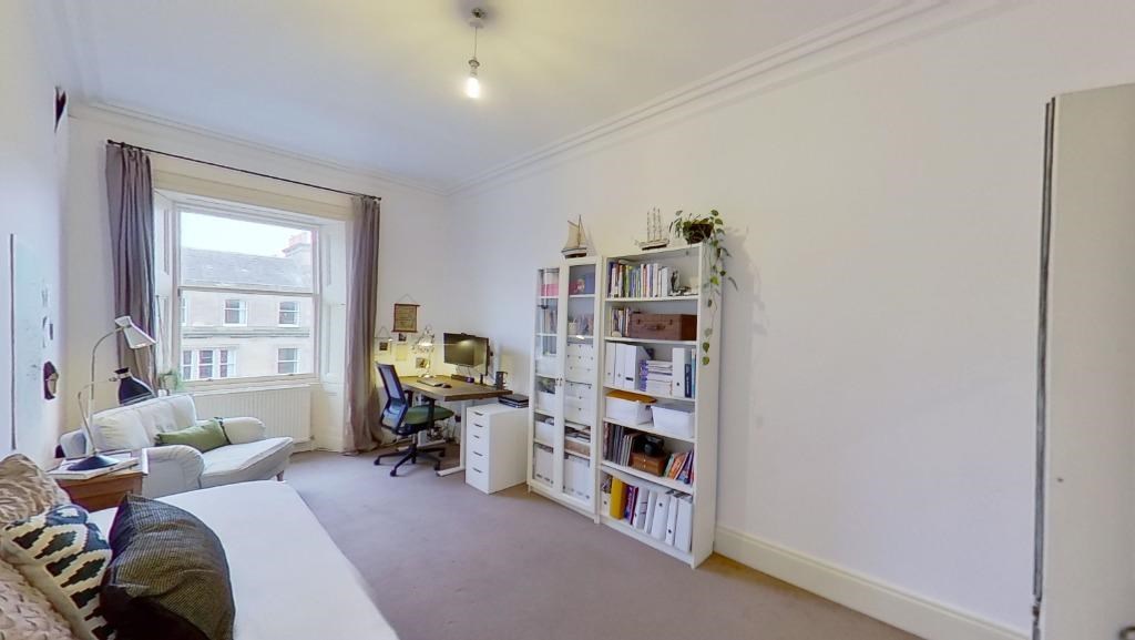 This impressive Georgian apartment has been renovated to a high standard. The accommodation comprises; exceptionally well kept communal area, bright and spacious lounge, modern fully fitted kitchen with integrated appliances, large master bedroom with fitted wardrobes, the master leads to the Jack and Jill bathroom which is complete with three-piece suite and shower over bath, adjacent to this is an spacious single bedroom which could make and ideal office or nursery or both also boasting the impressive views of the Edinburgh skyline, there is an individual W.C. to service the reception rooms of the property and finally the second double bedroom to the front of the property with wardrobes in a spacious room with light neutral décor.
