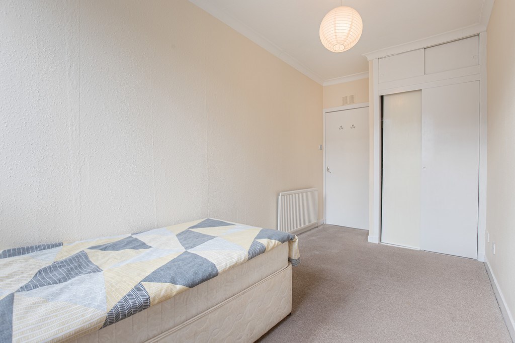 BEDROOM 1 The first bedroom of this property is located just right as you enter, greeting you with a singular large window allowing for a bright and welcoming interior. A comfortable beige coloured carpet is paired with a cosy single bed tucked neatly into the corner to create plenty of room for any future bedroom furnishings a tenant may wish to move in.