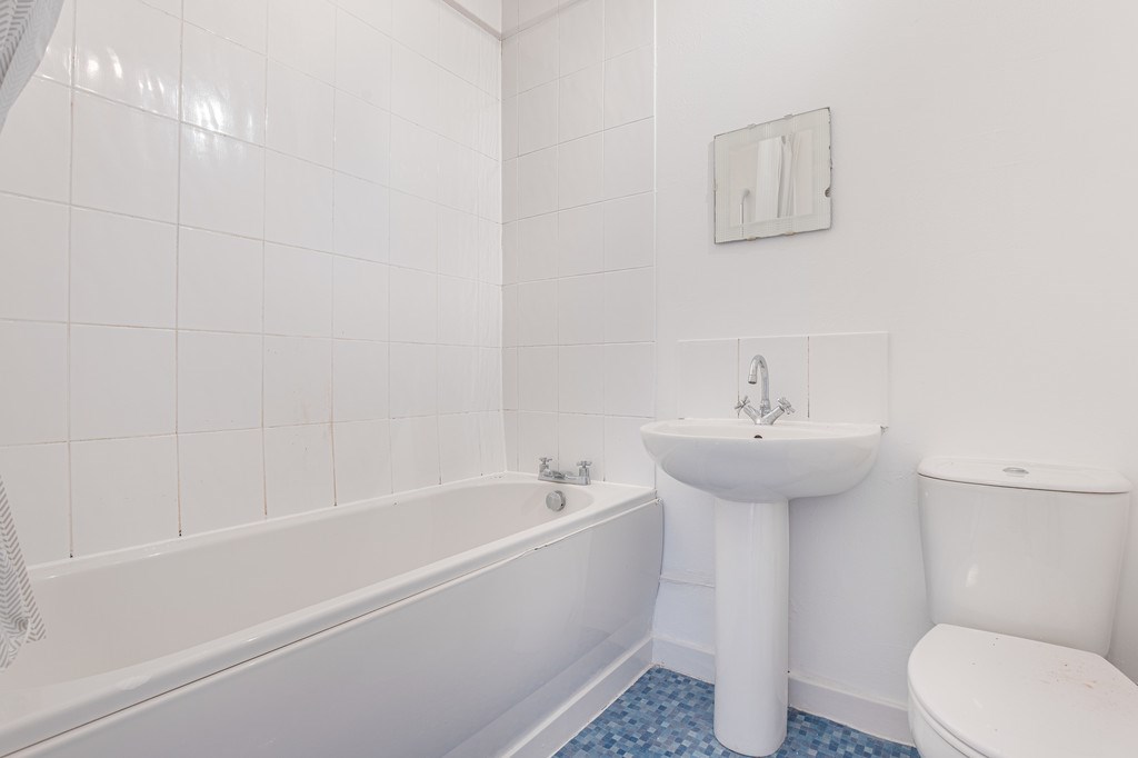 BATHROOM Entering the bathroom for this property you will step onto a beautifully presented mosaic style tile floor that shines through in a contrast to the jet white walls. A modern style sink is expertly matched with a large bath area that doubles up as a shower, giving the tenant that all important choice between a quick shower or a long soak in the bathtub.