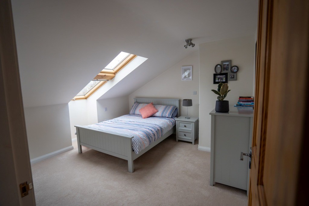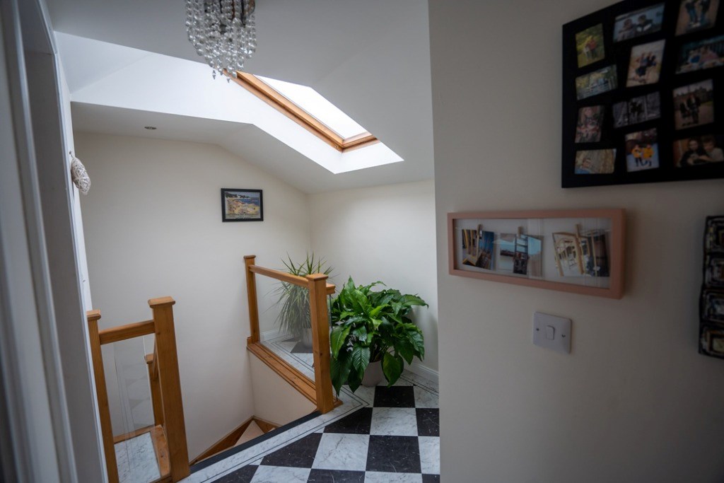 A glass balustrade staircase leads to the upper level which is a bright and airy space. Here there are two further double bedrooms and a family shower room.