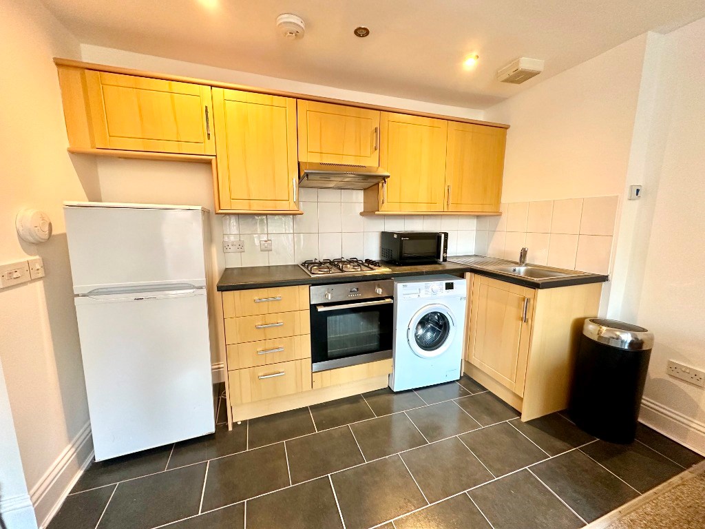 Internally the accommodation comprises of reception hall with storage cupboard off, bright open plan lounge / kitchen with feature bay window and appliances including fridge freezer, washing machine, gas hob and electric oven, two bedrooms , the master being a good sized double and the second bedroom is a single in size or could be used as an office/study. Finally the shower room which features white ceramics and a shower cubicle.