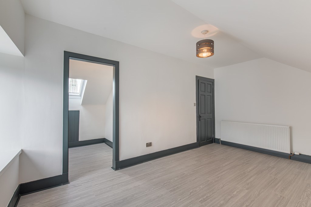 BEDROOM 3 The third bedroom is located on the second floor immediately on the right as you reach the top of the stairs. The room itself contains a modern wooden style flooring scheme and gives off a very homely vibe with a fantastic and exclusive walk-in wardrobe space. This is the ideal bedroom for any tenant with plenty of light being provided by two side facing windows.